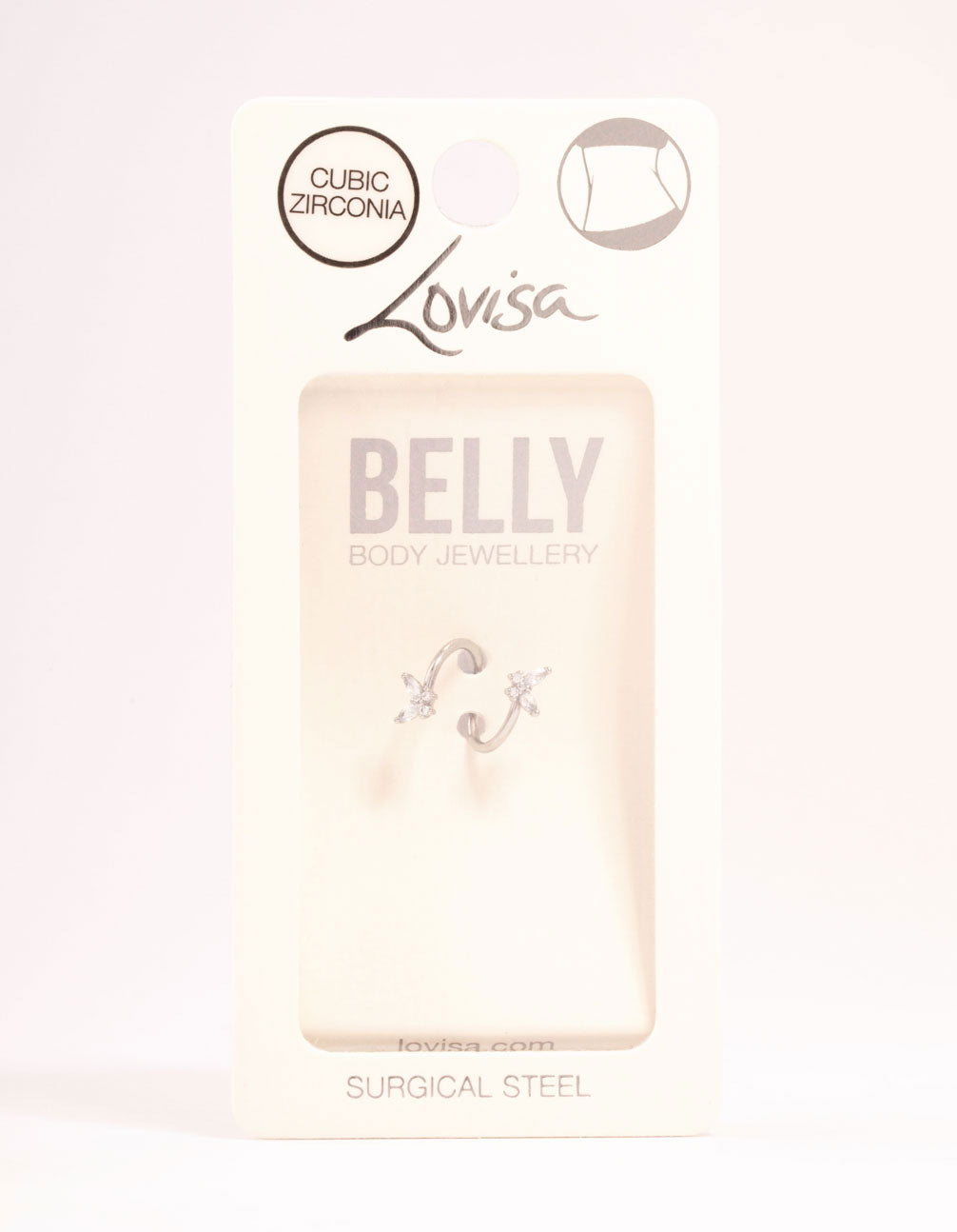 Surgical Steel Cubic Zirconia Twisted Double Butterfly Belly Bar Surgical Steel Cubic Zirconia Twisted Double Butterfly Belly Bar Surgical Steel Cubic Zirconia Twisted Double Butterfly Belly Bar