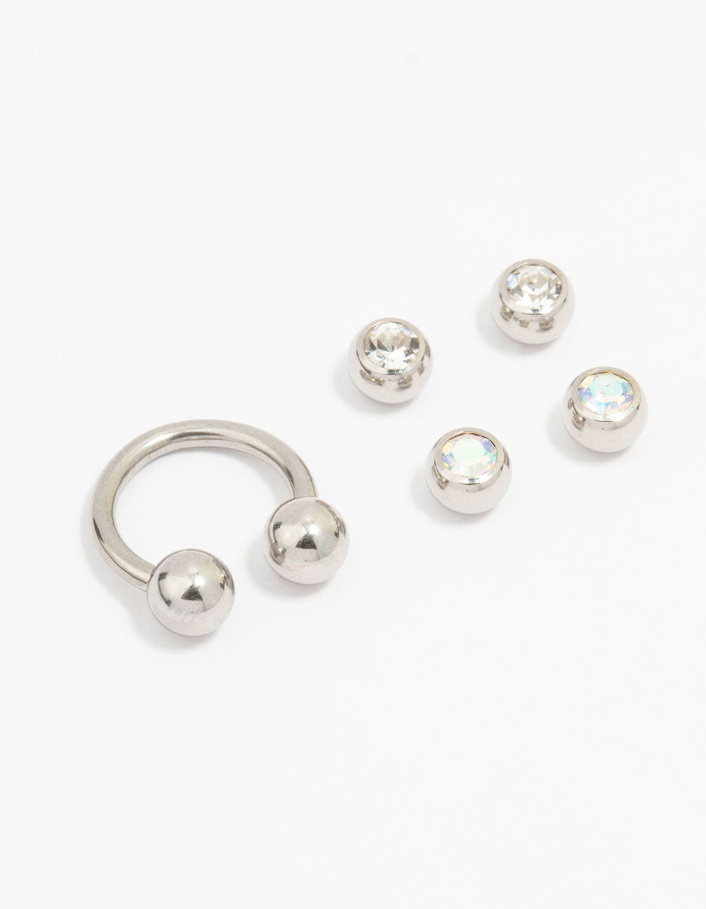 Customise your look with our selection of premium, genuine surgical steel piercing jewellery. This belly piercing pack contains a single, curved belly piercing and four interchangeable charms to personalise your look.
