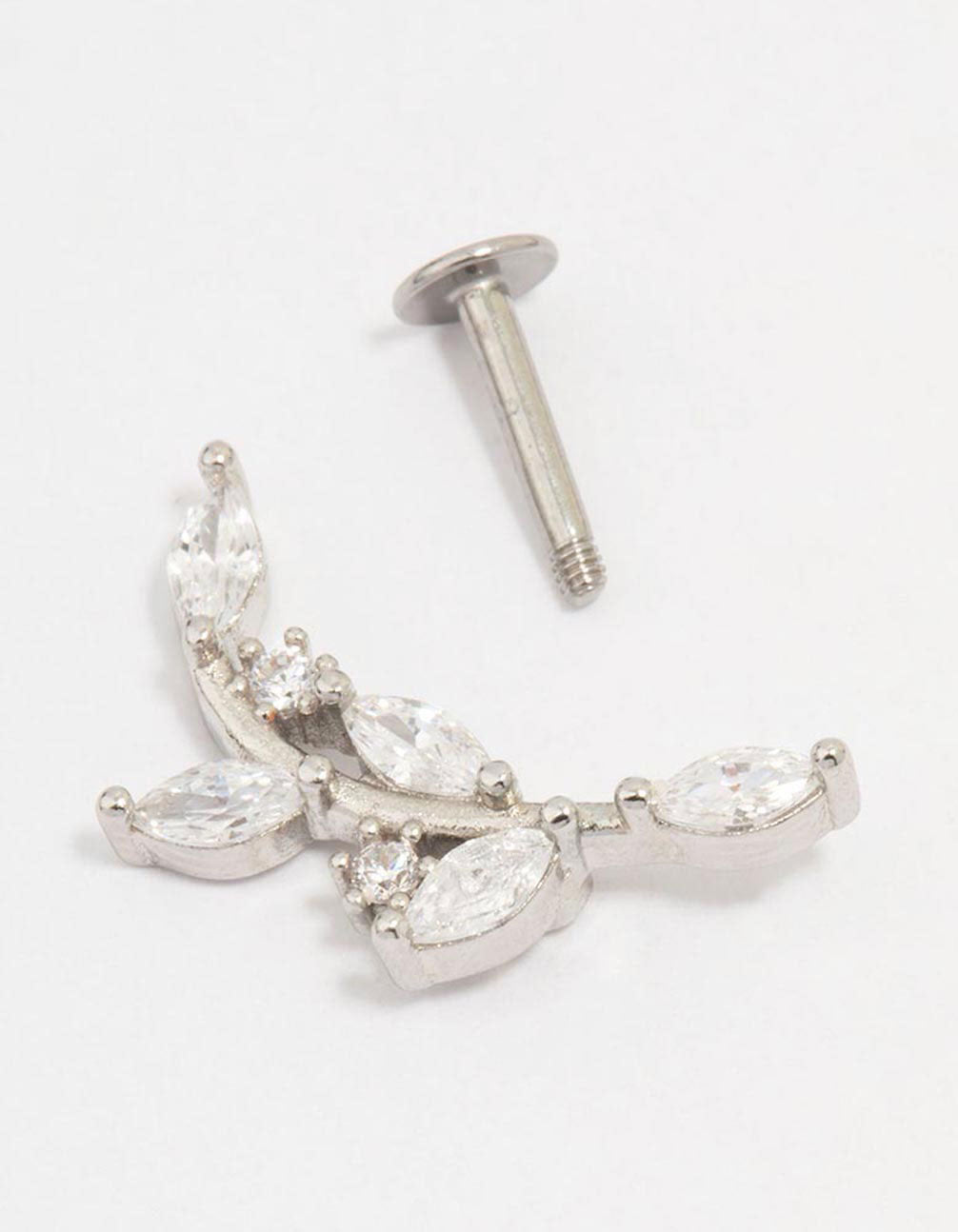 Personalise your stack with our selection of premium, surgical steel piercing jewellery. This flat back piercing features a unique, curved silhouette encrusted with cubic zirconia crystals for a hint of sparkle.