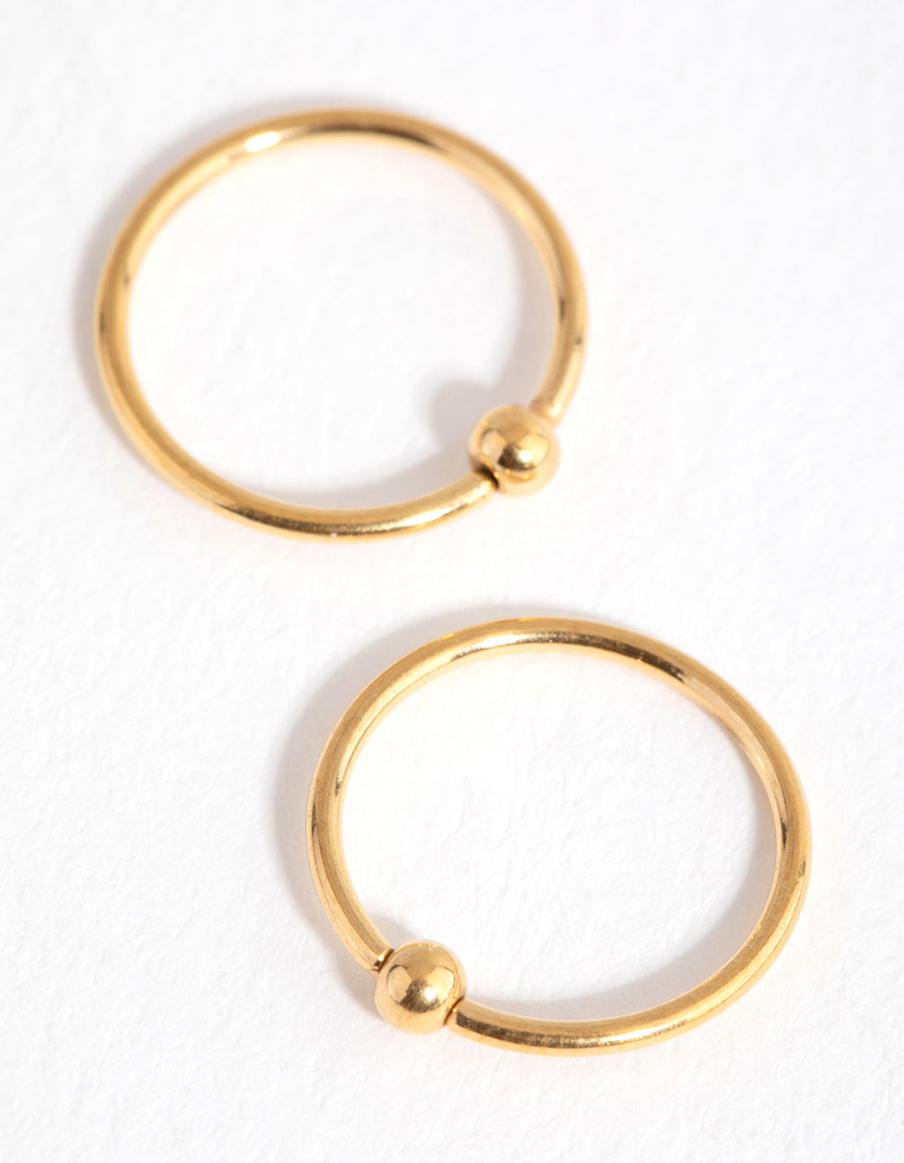 Lovisa body jewellery is made from surgical steel, making it perfect for daily wear. This surgical steel gold-toned ball end hoop earring is a wardrobe staple for daily styling. Mix and match with our cubic zirconia range for a glamorous look.