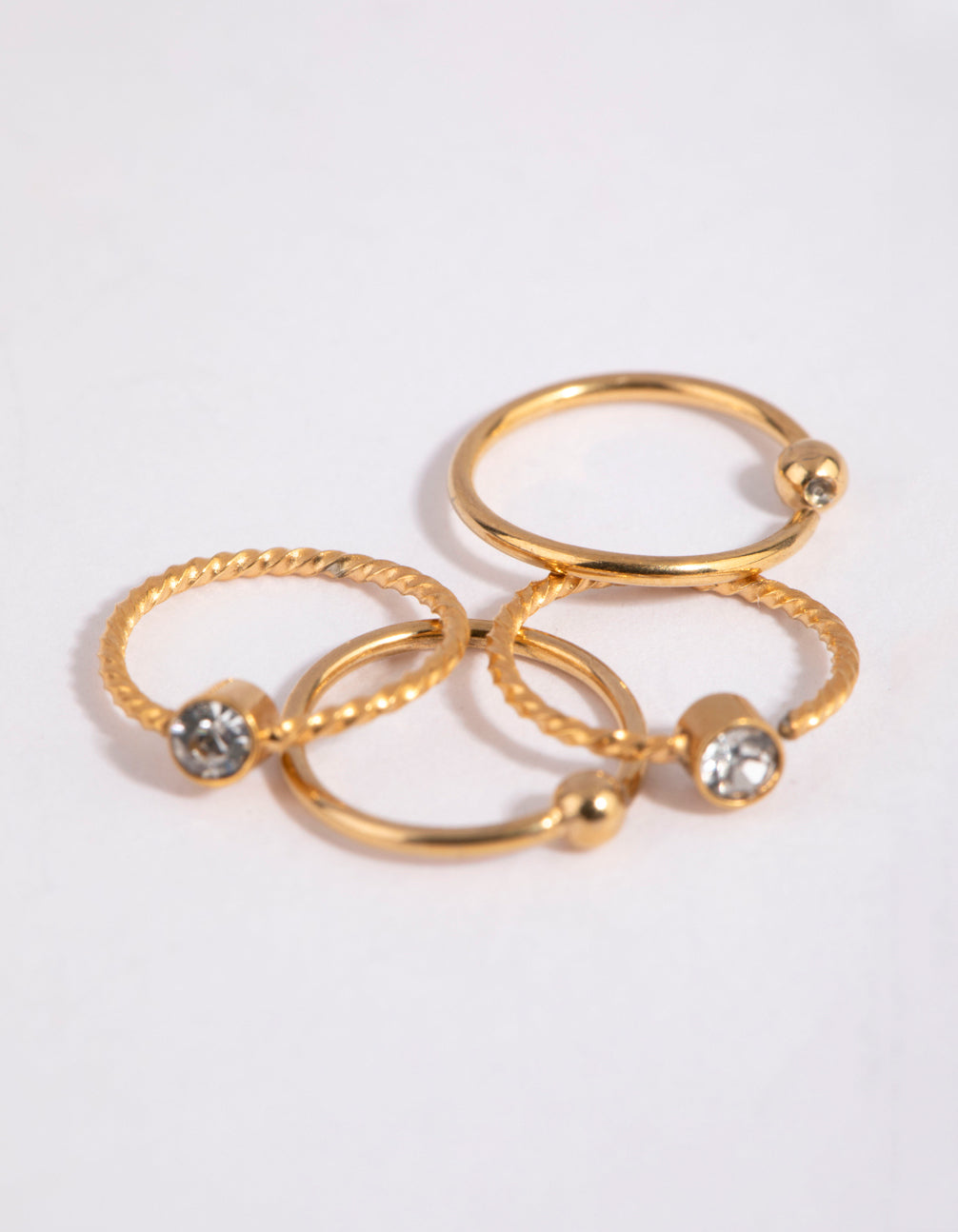 Gold Plated Surgical Steel Textured Diamante Nose Ring 4-Pack