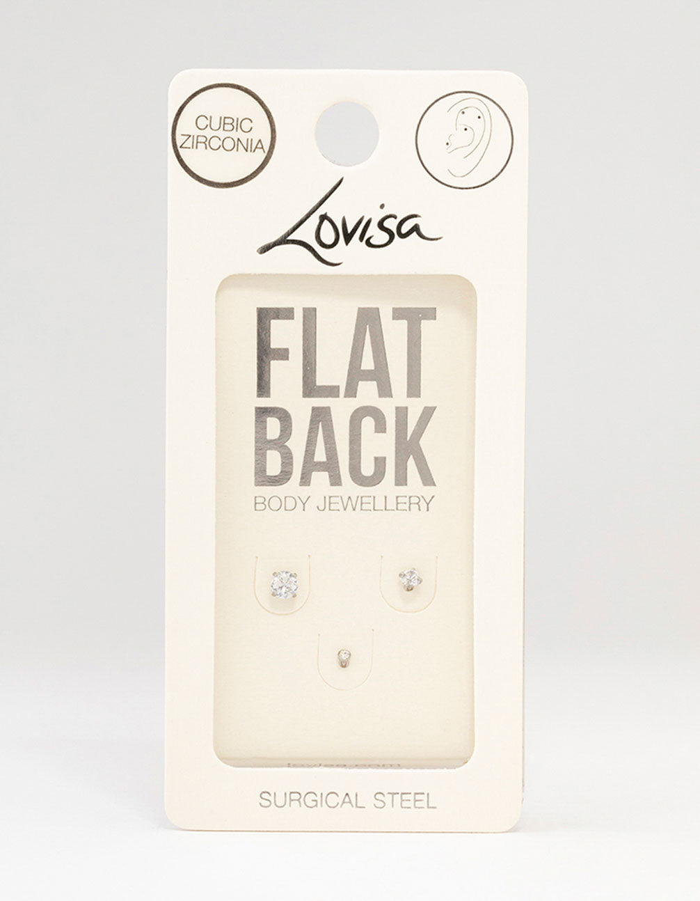 This 3-pack of flat back cubic zirconia studs offers a graduating size range for a variety of looks. Featuring a high polish surgical steel post and flat back for comfort, these cubic zirconia studs provide a hint of sparkle in three versatile sizes.