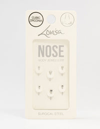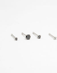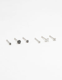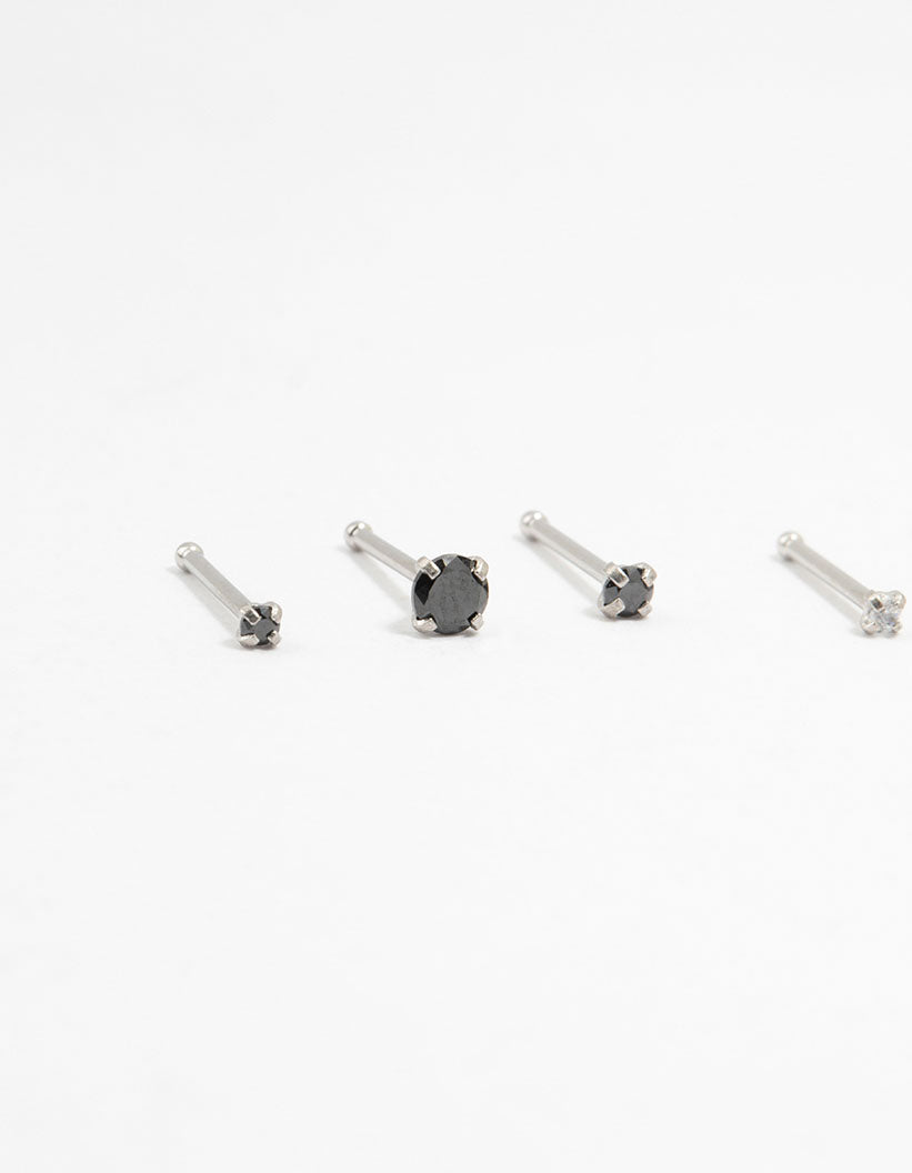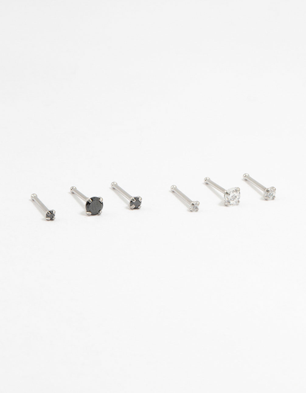 Revamp your nose piercing with this set of six studs featuring elegant silver and striking black cubic zirconia options. Whether you prefer edgy black or sparkling silver, this versatile set lets you mix and match to suit your style.
