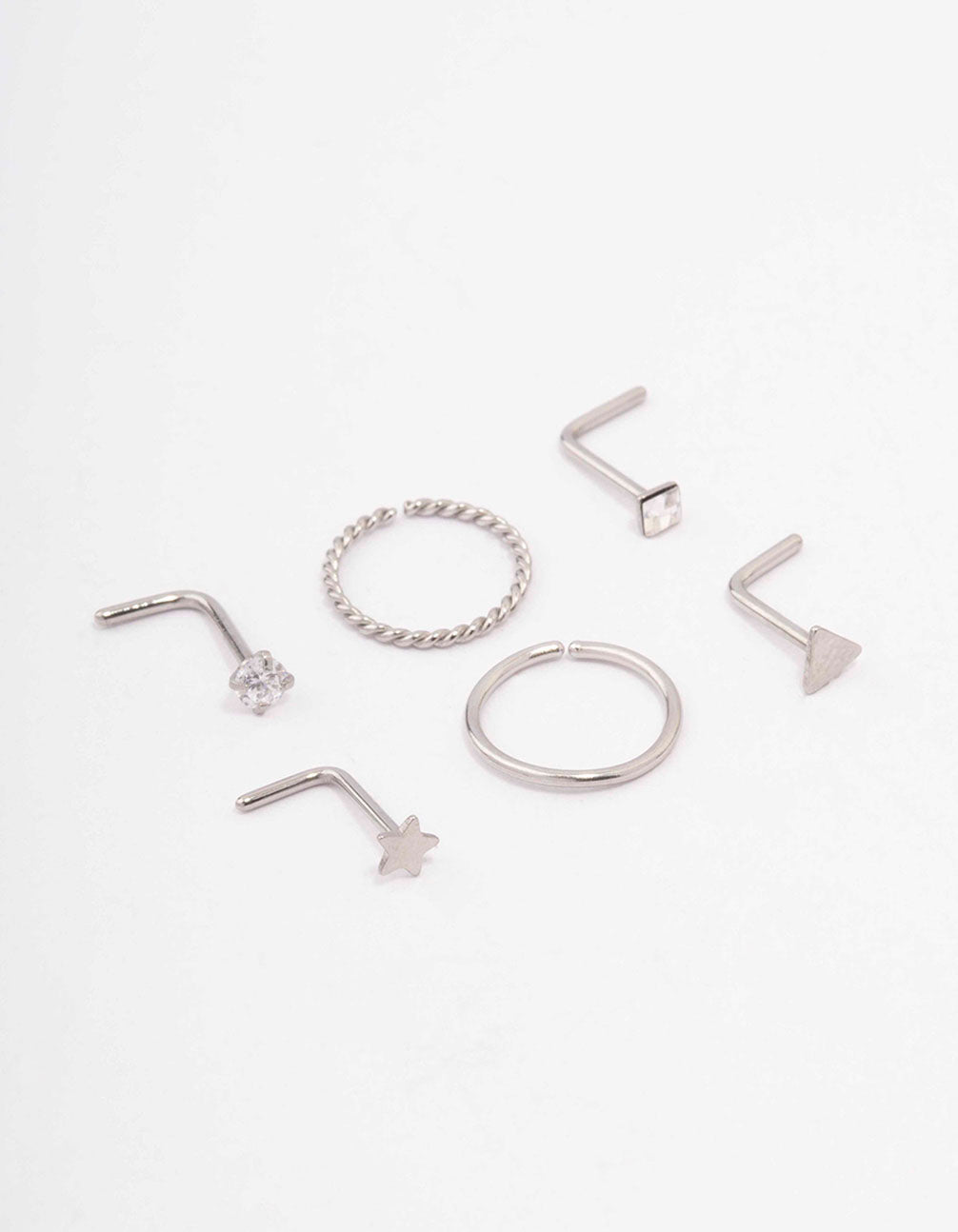 Surgical Steel Star Twisted Nose Piercing 6-Pack