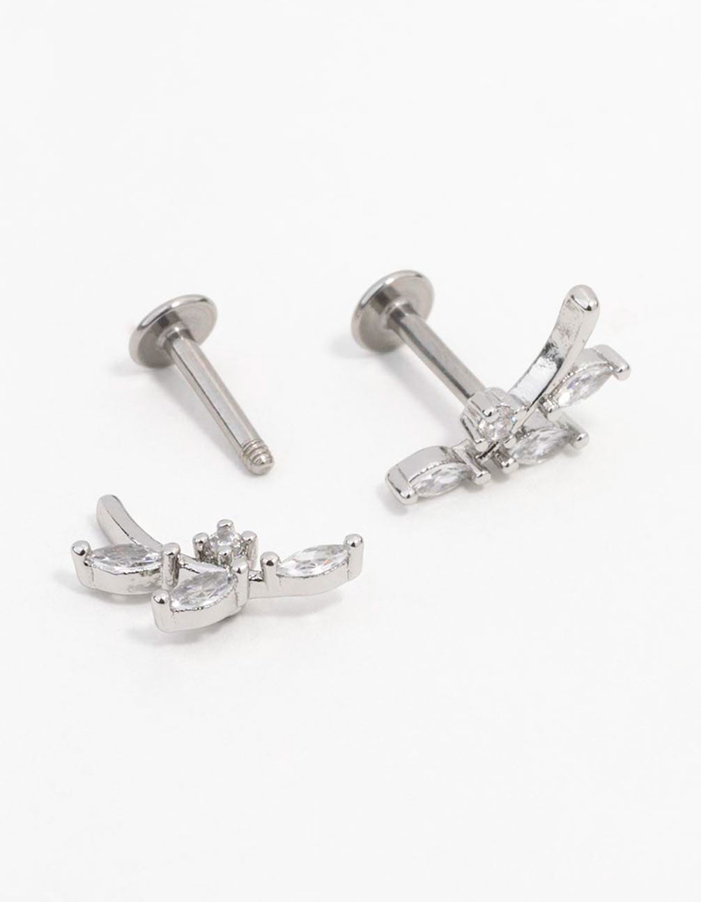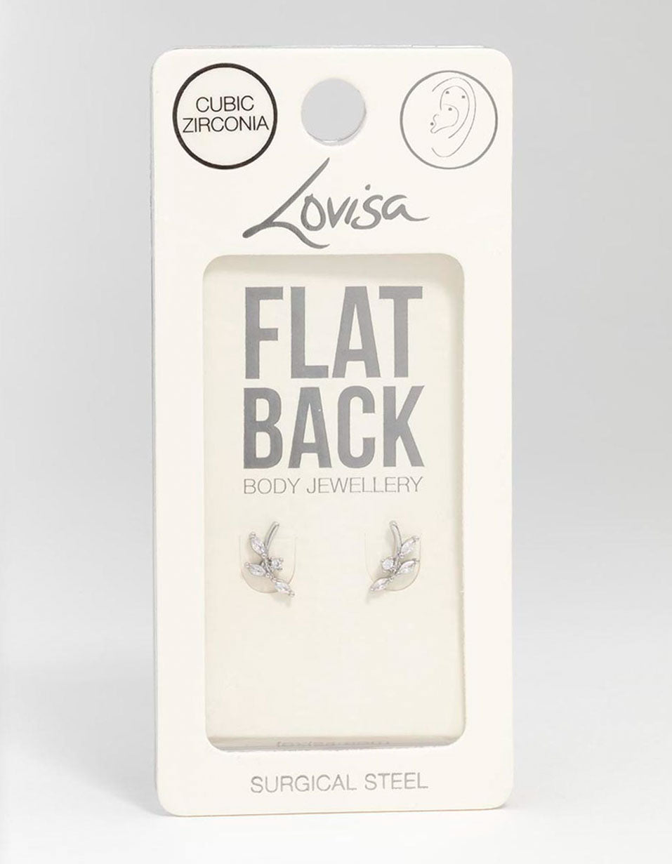Surgical Steel Steel Cubic Zirconia Vine Flat Back Earrings 2-Pack