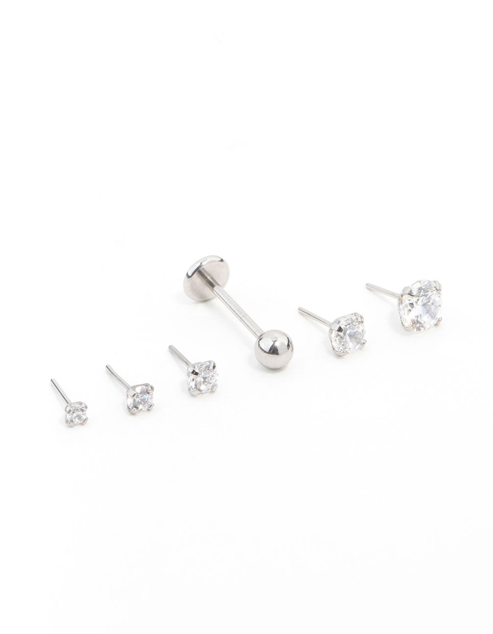 Surgical Steel Stone Flat Back Earrings 6-Pack