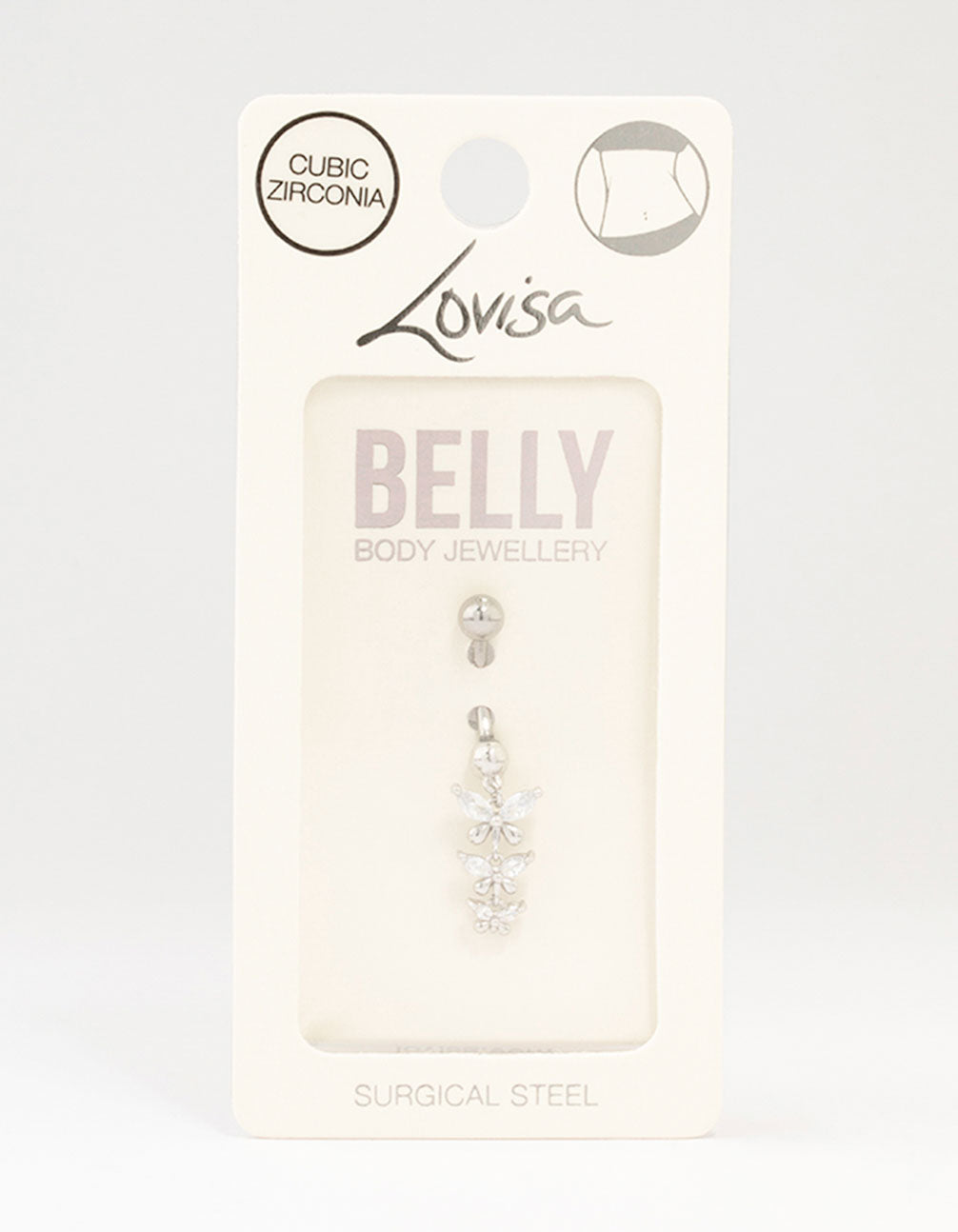 Surgical Steel Trio Butterfly Drop Belly Bar