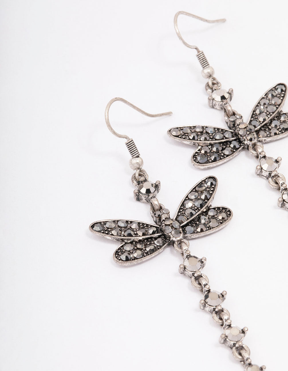 - These simple drop earrings have a unique antique silver setting feautring a dainty dragonfly design.