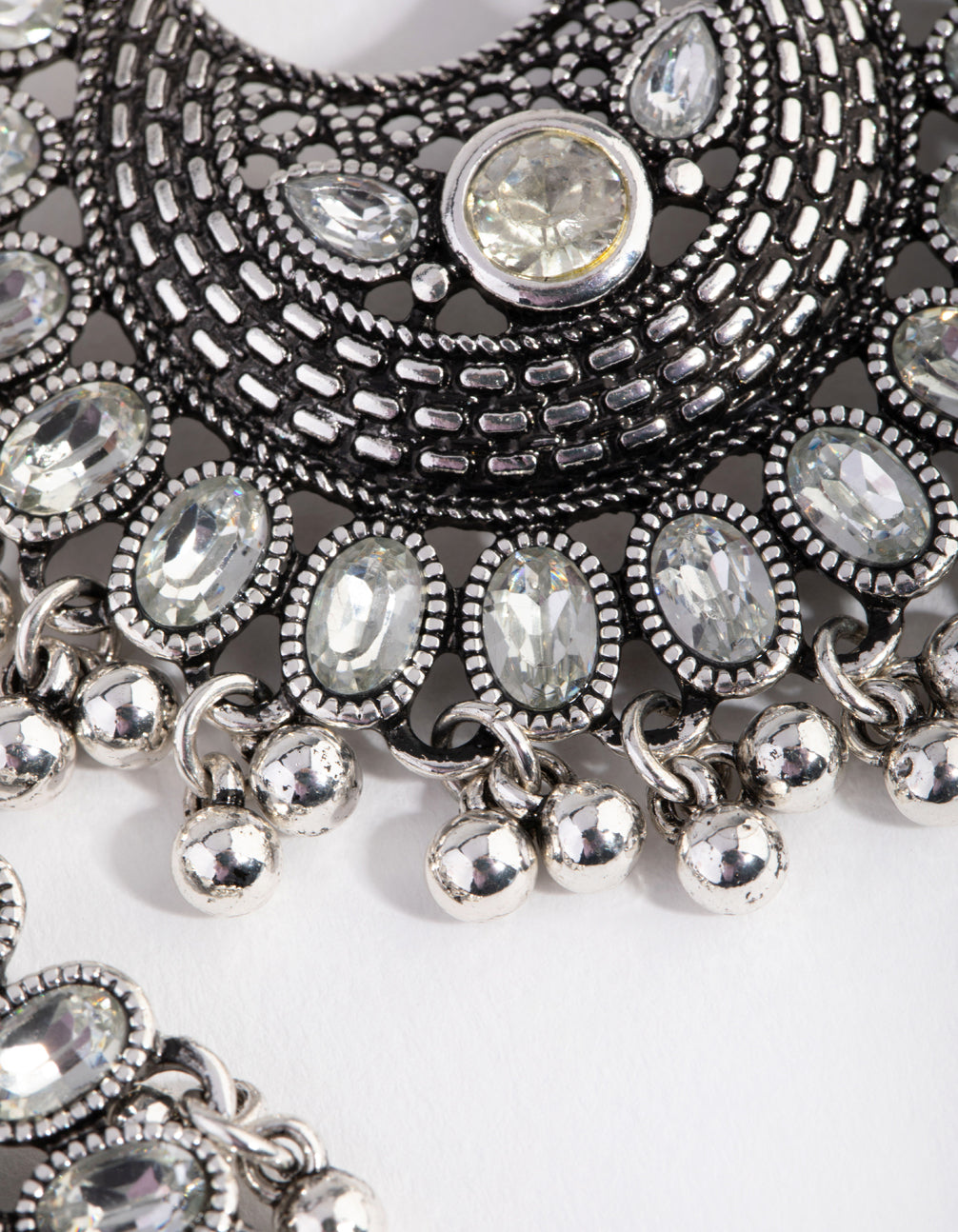 Antique Silver Diamante Drop Chandbali Earrings