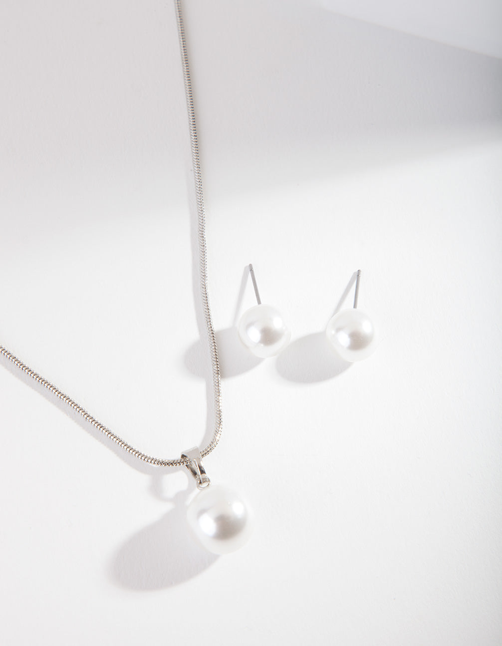 Round out your collection with silver-toned essential styles perfect for any occasion. This jewellery set boasts a necklace and earrings in a timeless faux pearl design.