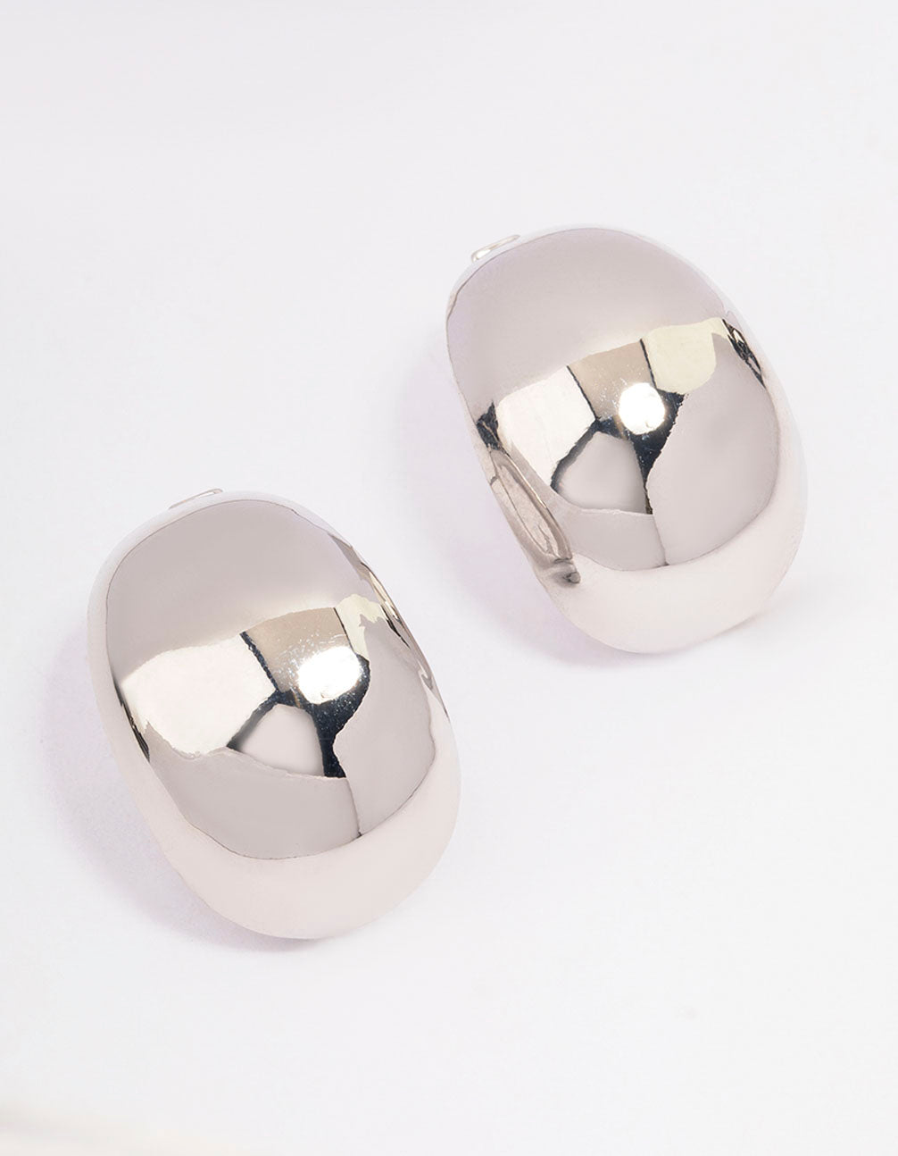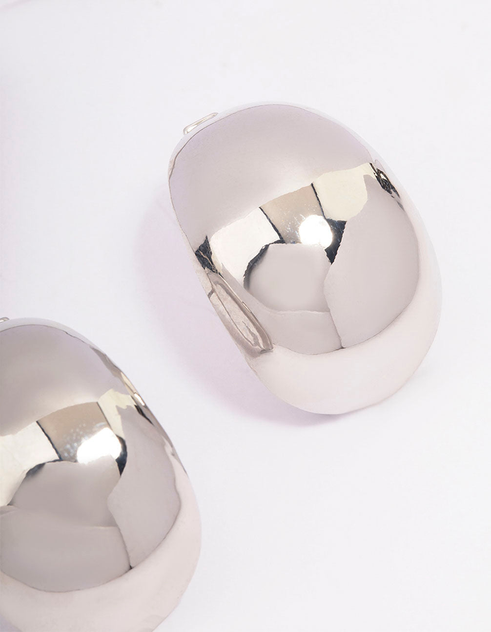 - These stunning statement stud earrings feature a simple oval shape with a shiny silver finish for a modern look.