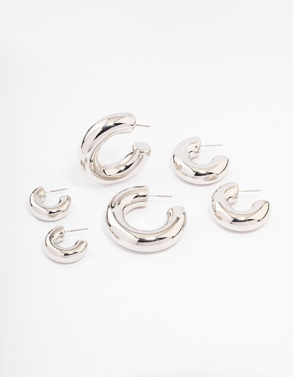 - This Silver Thick Smooth Hoop Earring Pack contains three sets of chunky hoops for a modern 'it-girl' finish to your look.