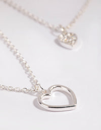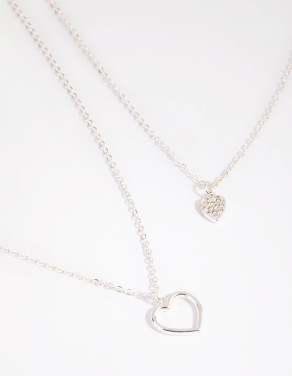 Silver Double Heart Layered Necklace
