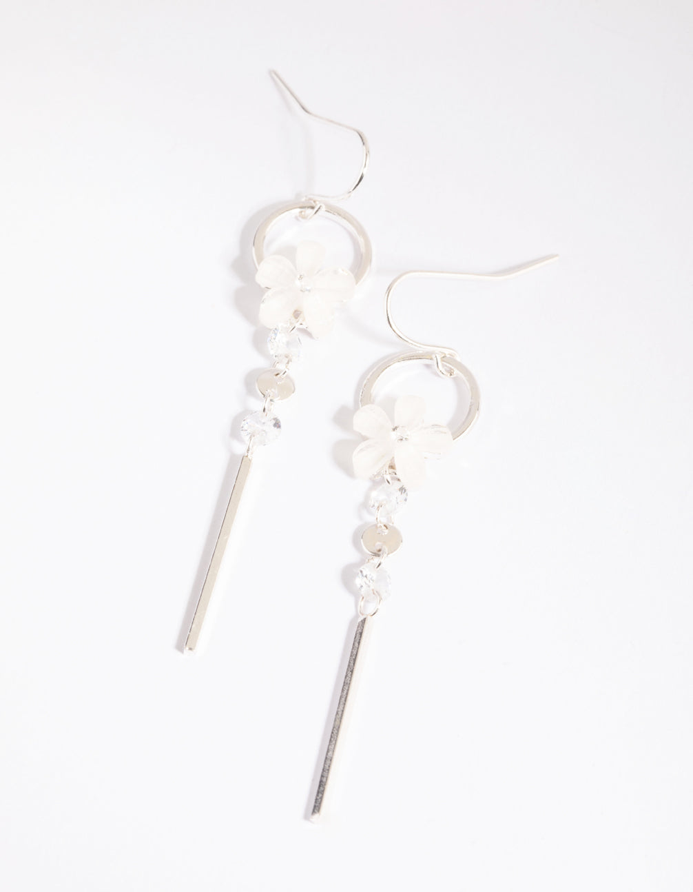 Silver Flower Drop Earrings