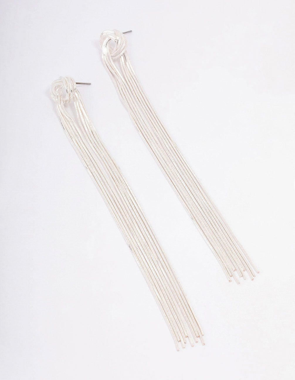 Silver Knotted Cup Chain Drop Earrings