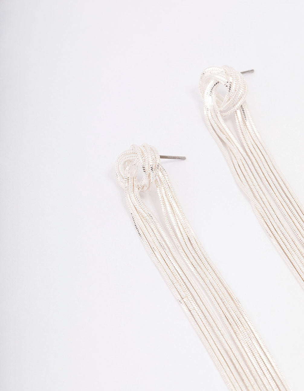 - Style these Silver Knotted Cup Chain Drop Earrings with a set of simple round studs for a curated finish to your stack.