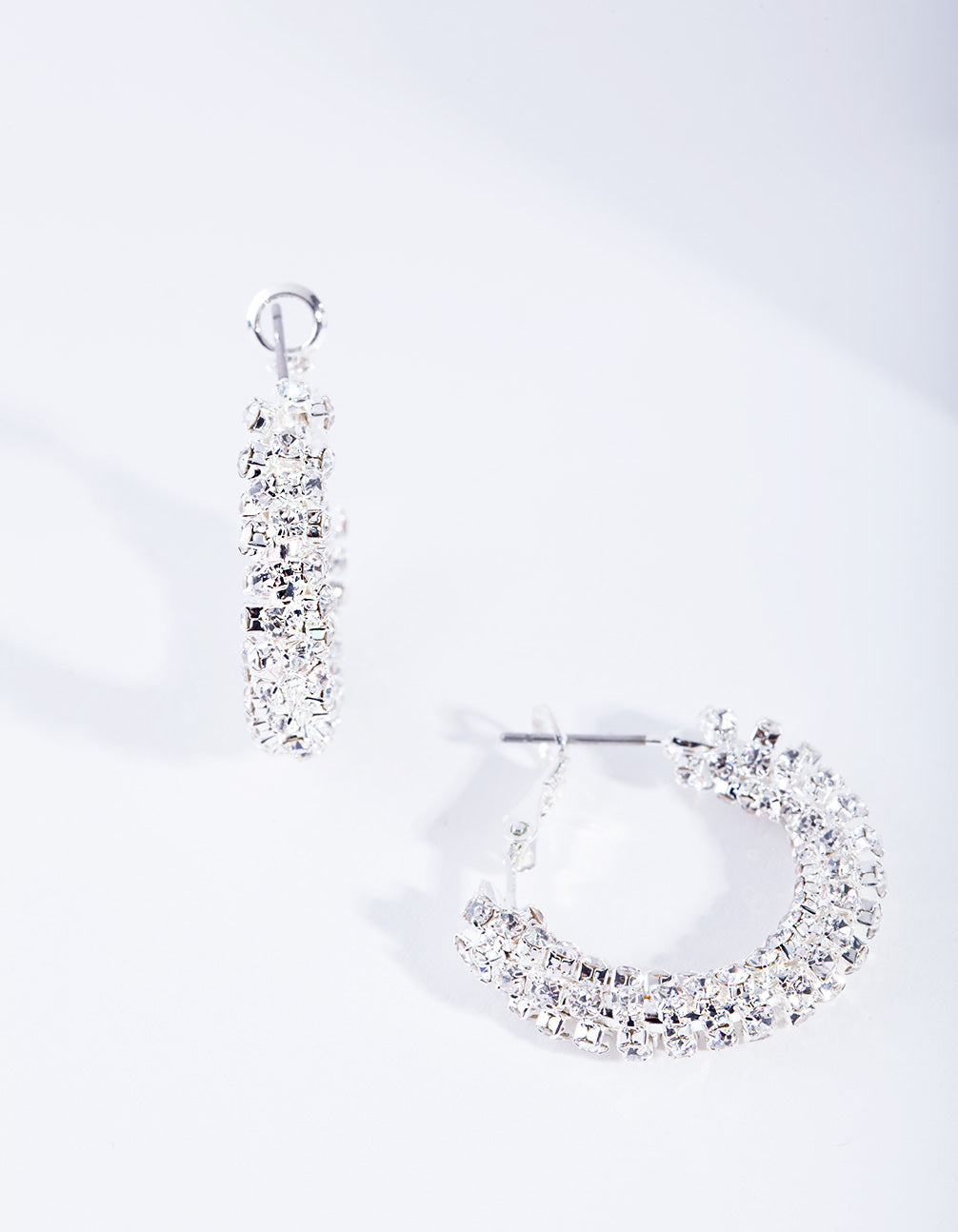 A fun pair of fashion earrings are an easy way to spice up your daily ensembles! This style features a silver-toned diamante hoop design.