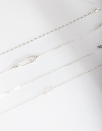 Silver Pin Diamante Anklet Bracelet 4-Pack