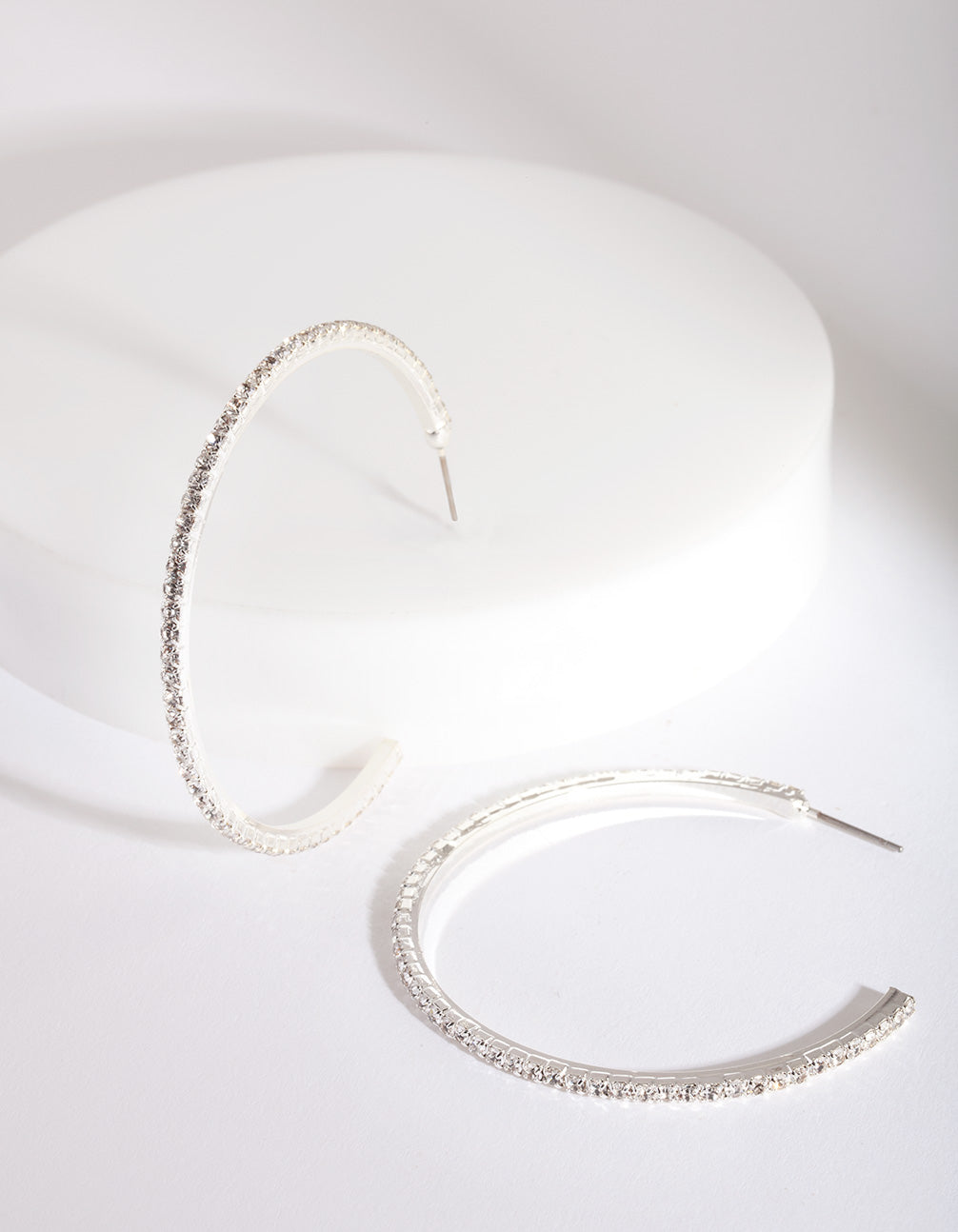 Silver Fine Diamante Hoop Earrings Silver Fine Diamante Hoop Earrings Silver Fine Diamante Hoop Earrings