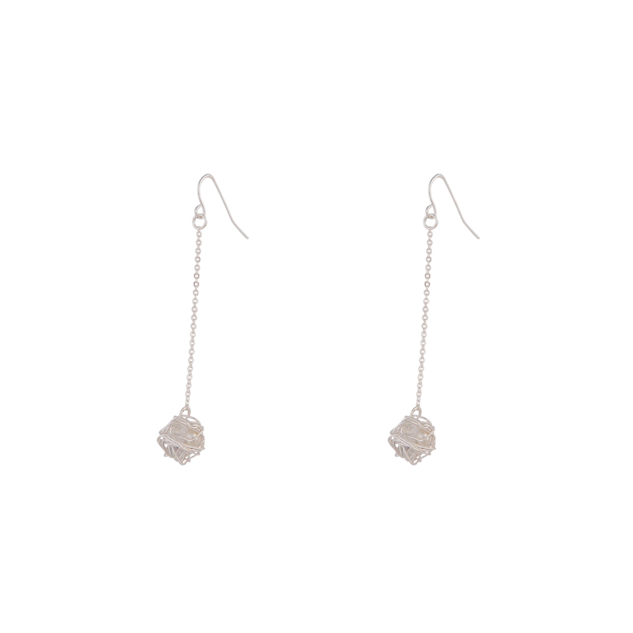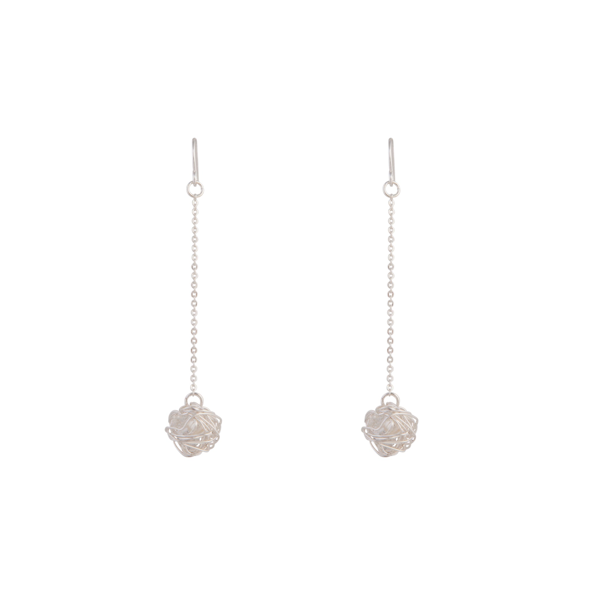 Silver Wire Wrap Ball Drop Earrings