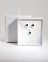Silver Diamond Simulant Aqua Necklace & Earring Set