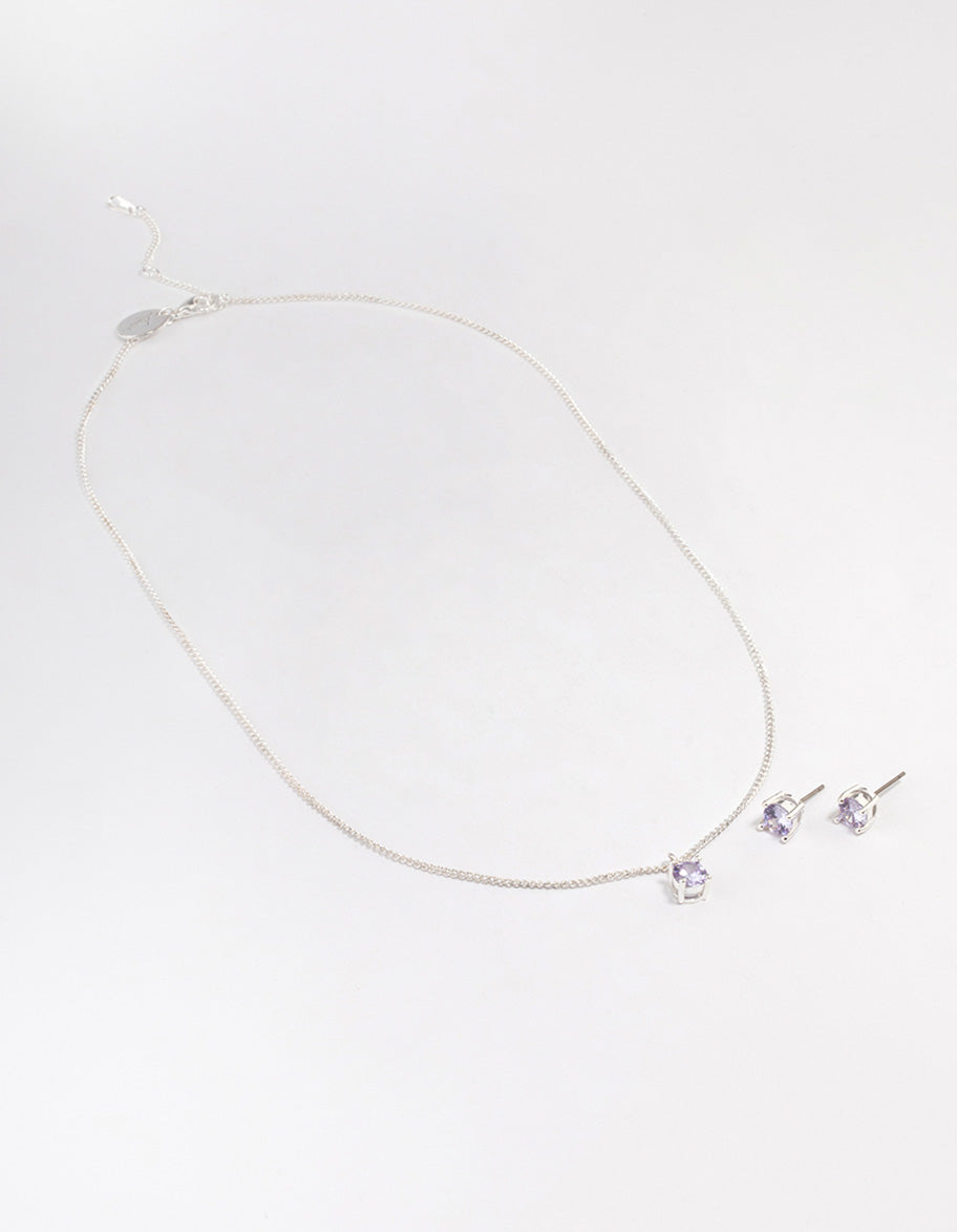 Silver Perfect Lilac Necklace & Earring Set Silver Perfect Lilac Necklace & Earring Set Silver Perfect Lilac Necklace & Earring Set