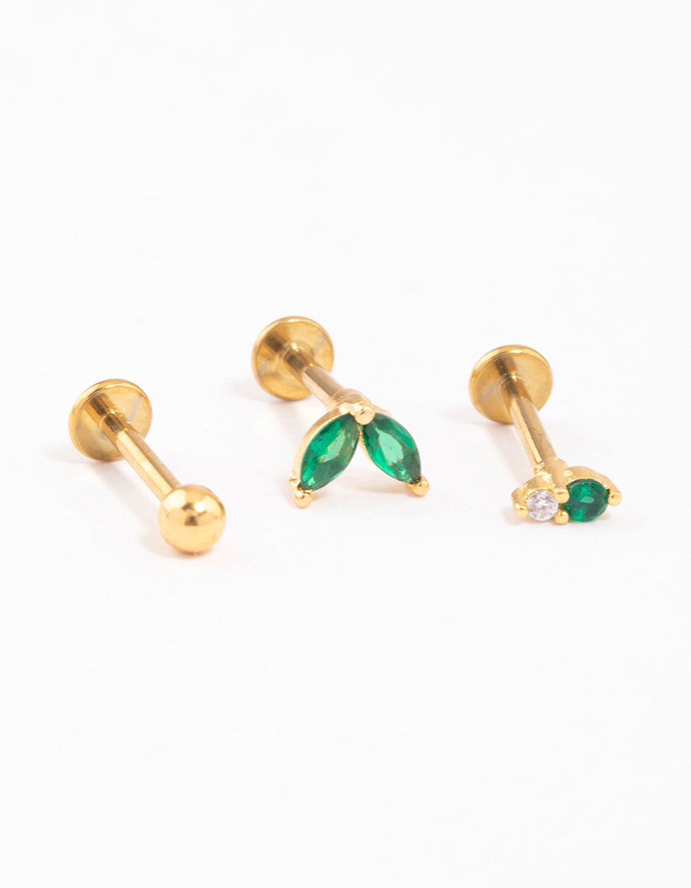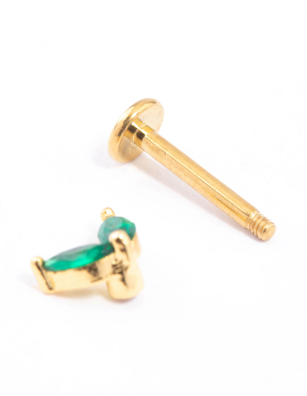 - This Gold Plated Titanium Cubic Zirconia Double Marquise Flat Back Pack contains three individual flatback piercings, designed with emerald cubic zirconia crystals for a pop of colour.
