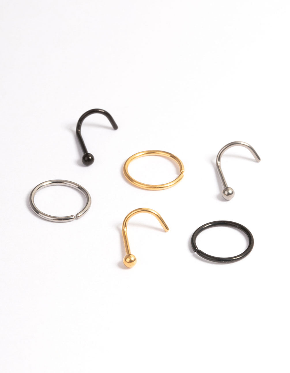 This nose stud and ring pack is crafted from titanium, a tarnish-resistant and durable material perfect for piercings! Style this multi-pack with some matching, silver-toned accessories for an on-trend look.