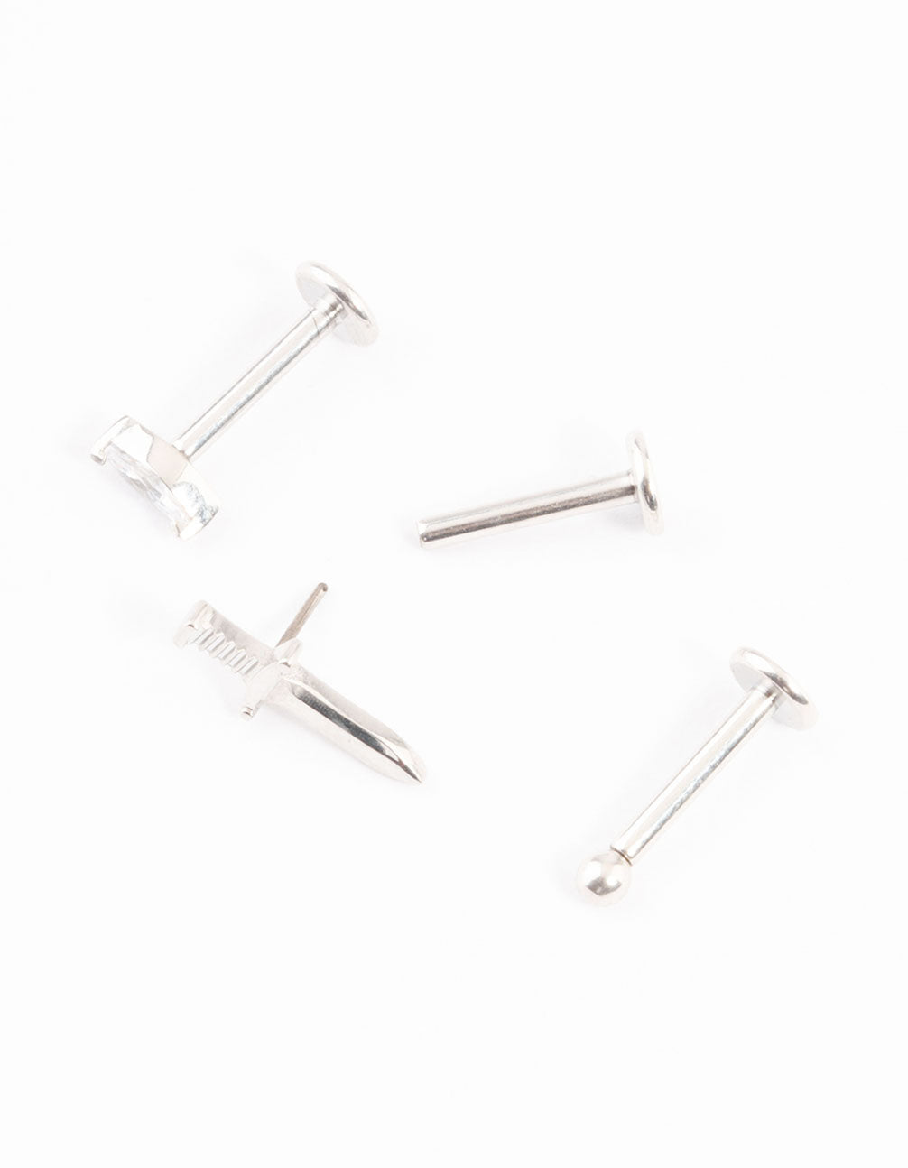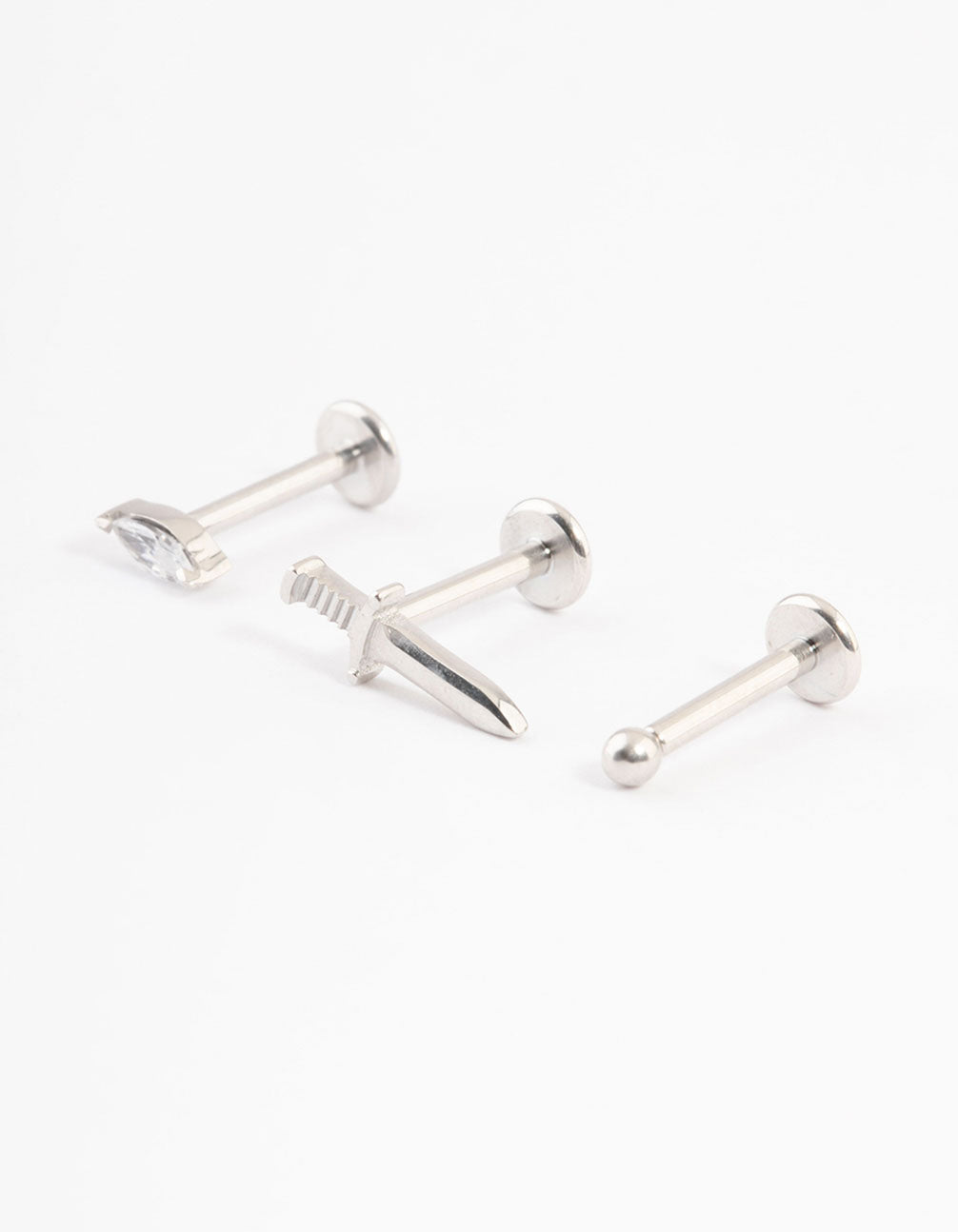 Embellished piercings are the latest trend to hit the runway! From versatile titanium studs, body piercings, to curated ear piercings — explore our range of threadless, titanium jewellery for a unique and personalised look.This pack feature 1 diamante teardrop flat back stud, 1 dagger flat back stud and 1 ball front flat back stud. Each flatback stud in this pack features a threadless back, for a secure fit and the threadless back also makes it easier for the flat back to be removed.