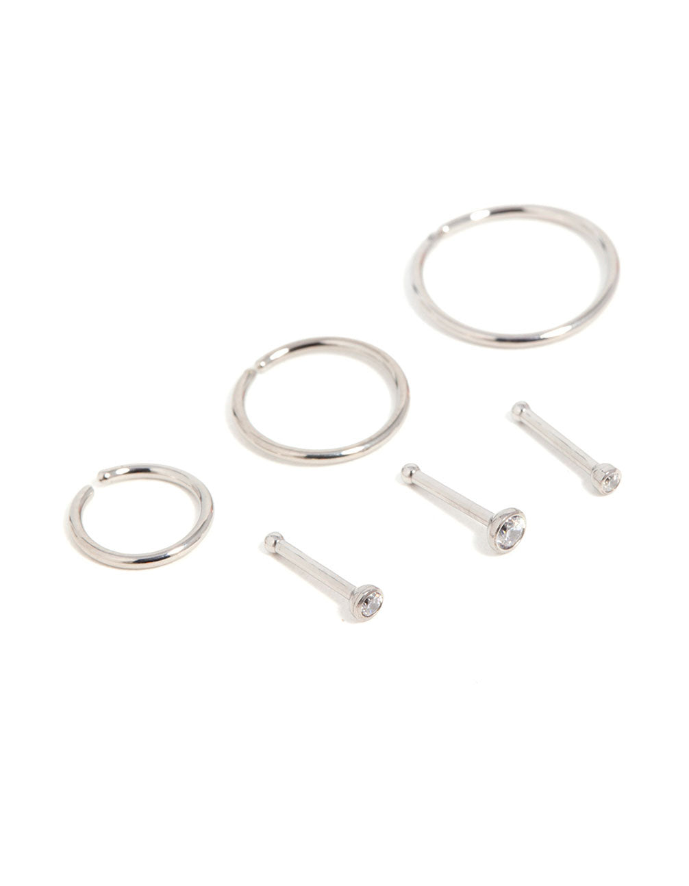 Titanium Cubic Zirconia Classic Nose Studs & Rings 6-Pack