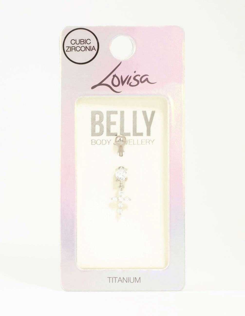 Add some sparkle to your look with this belly bar. This fun and elegant belly bar features a delicate cross design with sparkling cubic zirconia crystals. Made from titanium for durable and hypoallergenic wear.
