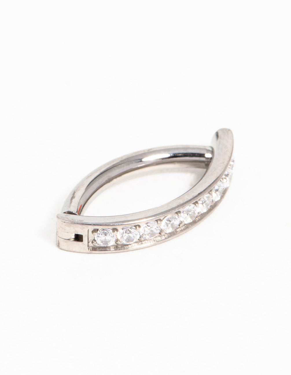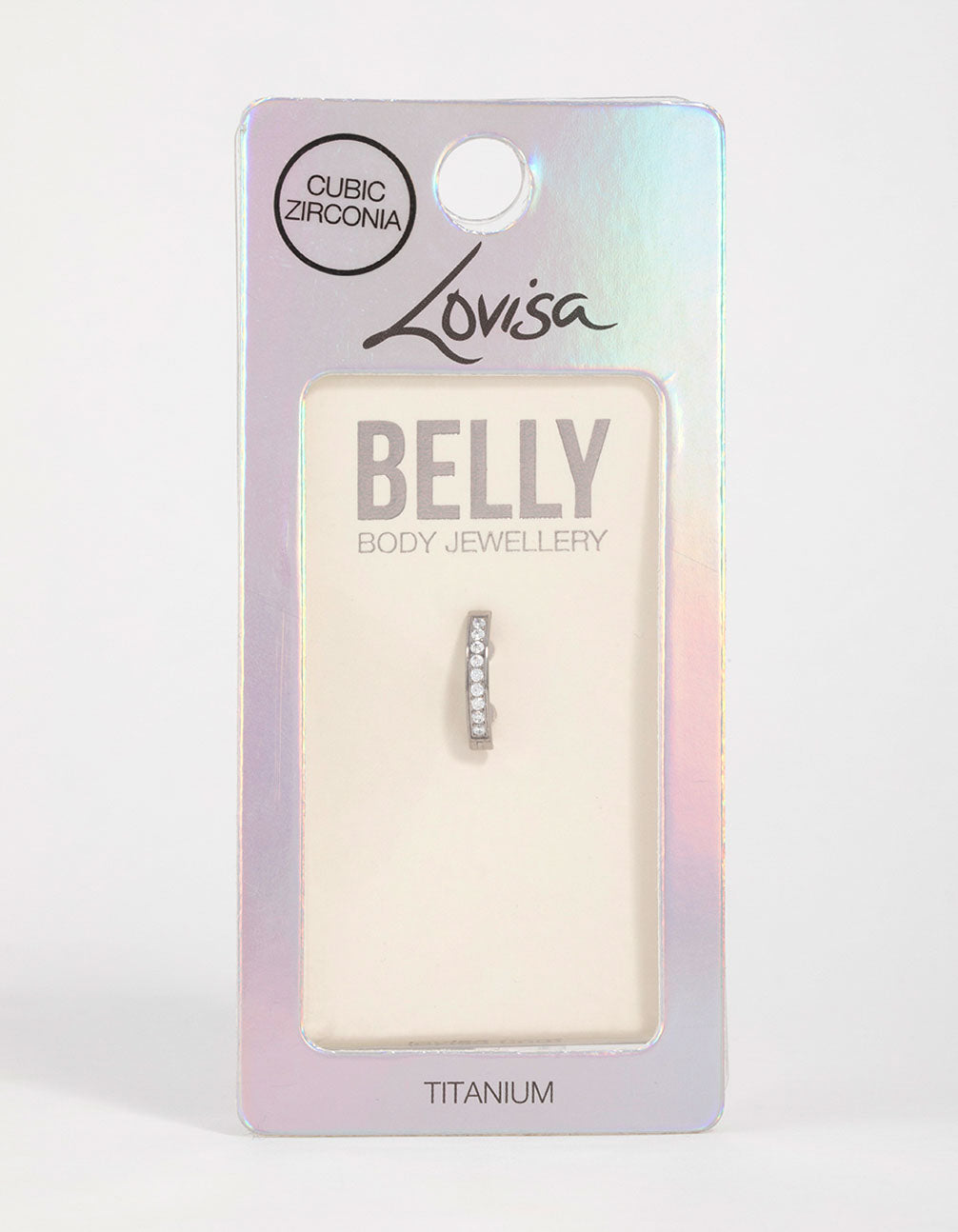 Titanium Cubic Zirconia Curved Ring Belly Ring