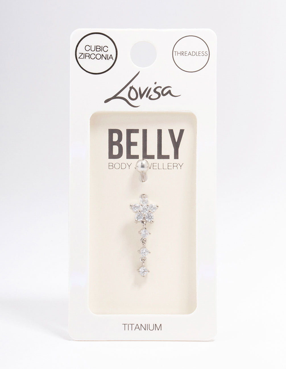 Titanium Cubic Zirconia Flower Triple Belly Piercing
