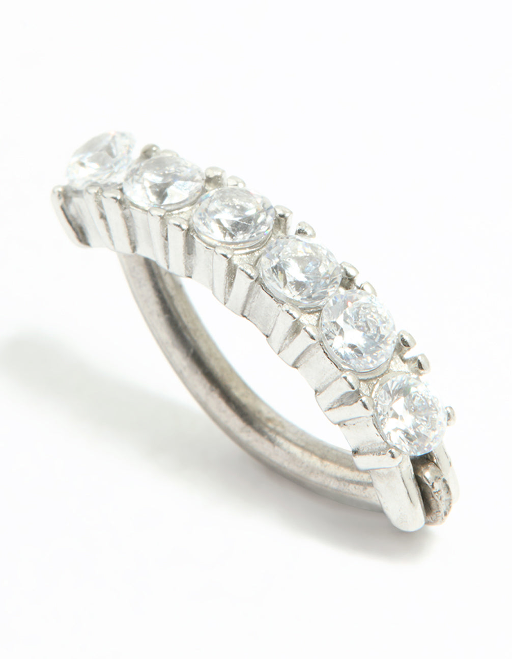 Titanium Cubic Zirconia Statement Curved Belly Ring