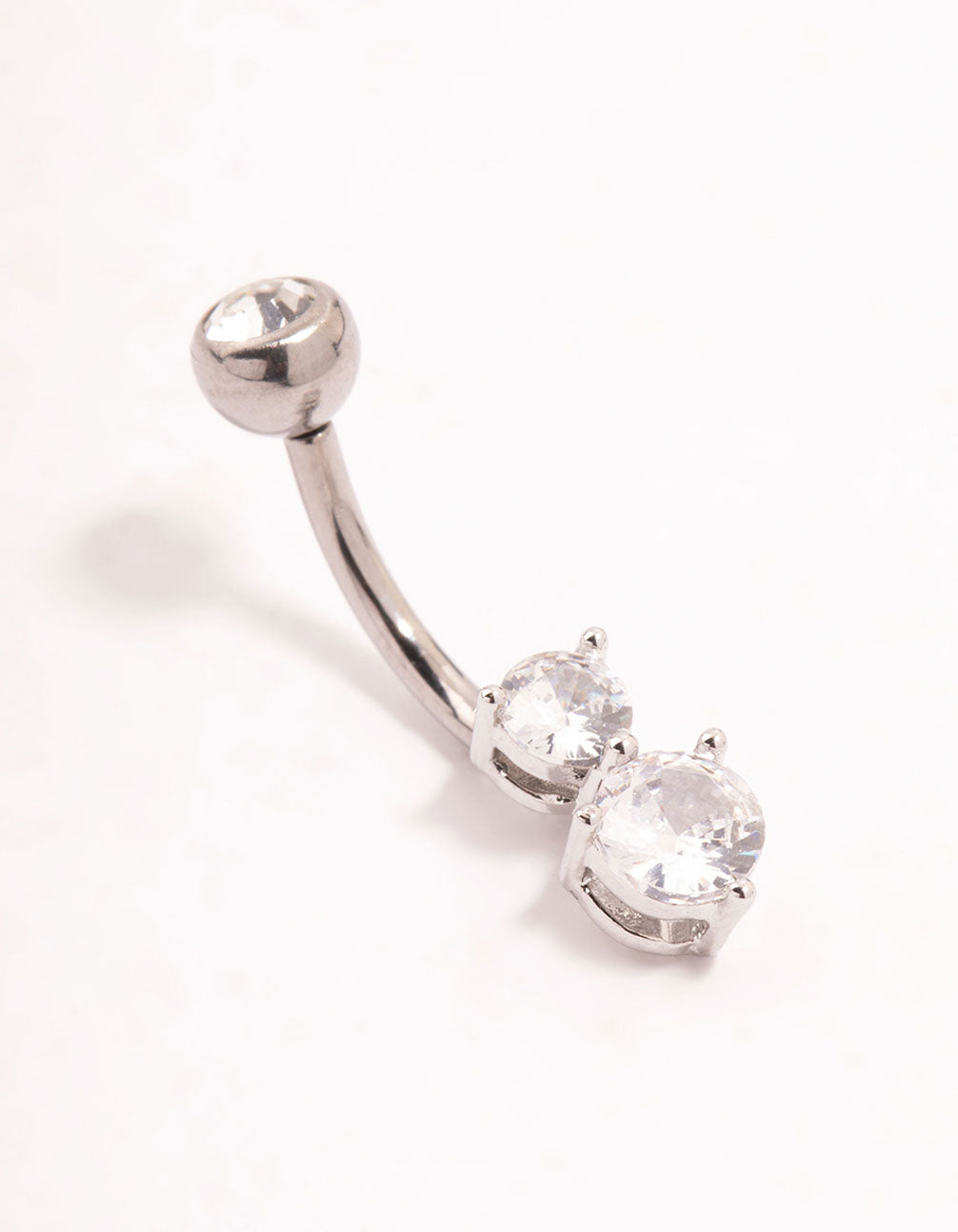 Titanium Round Cubic Zirconia Double Layered Threadless Belly Bar