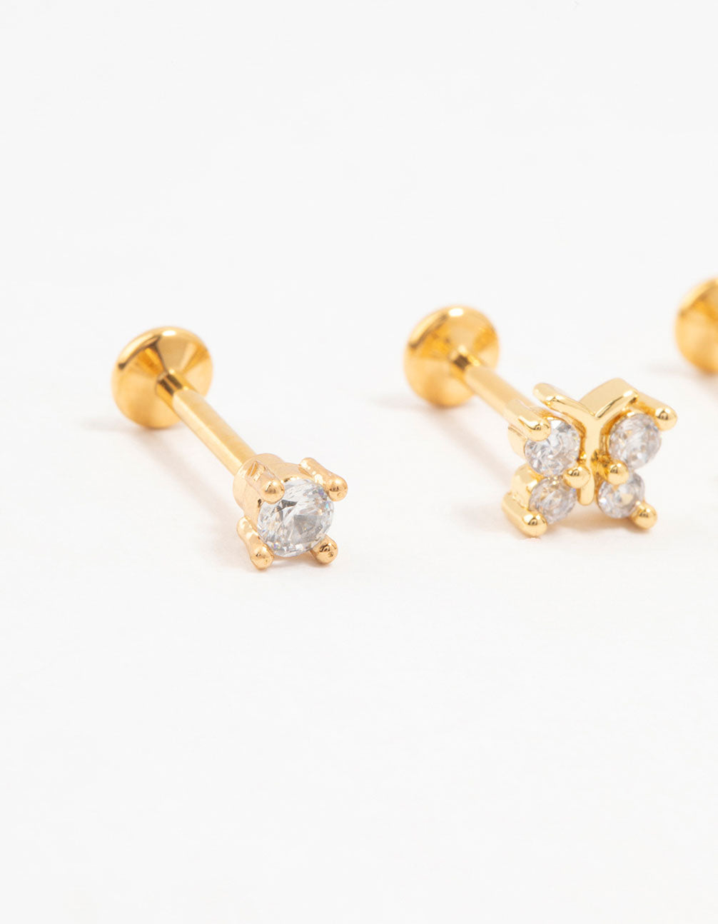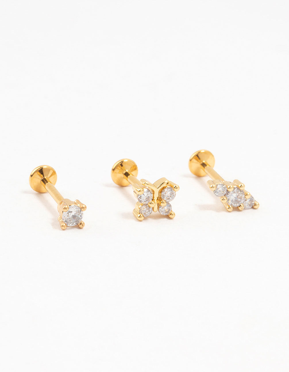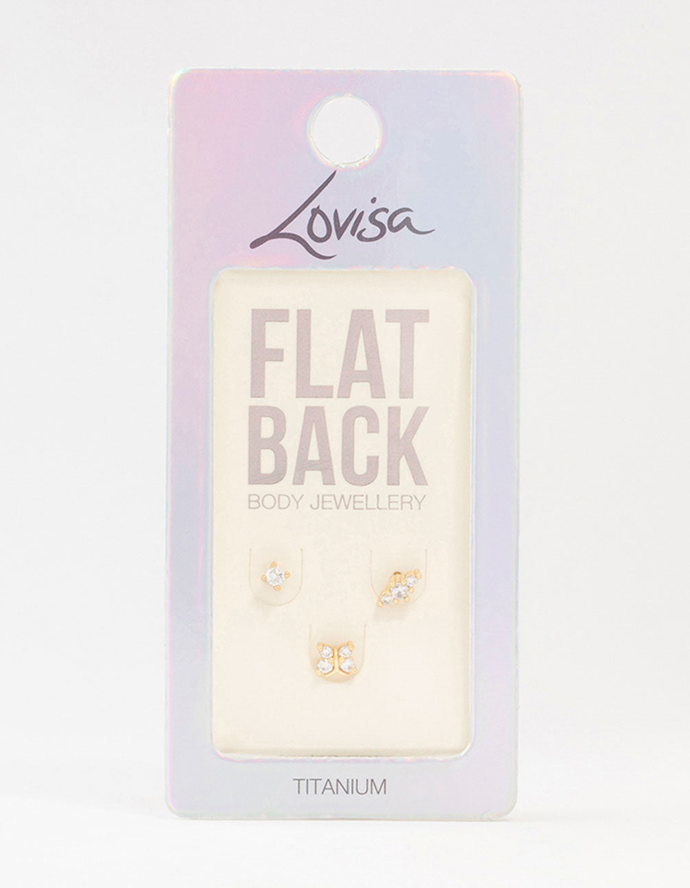 Express your individuality with Lovisa body jewellery! This gold-toned earring pack includes three studs which have flat backs for your comfort. They're made with titanium, which is gentle on ears. This pack features a butterfly theme. Each stud measures 16G/1.2mm.