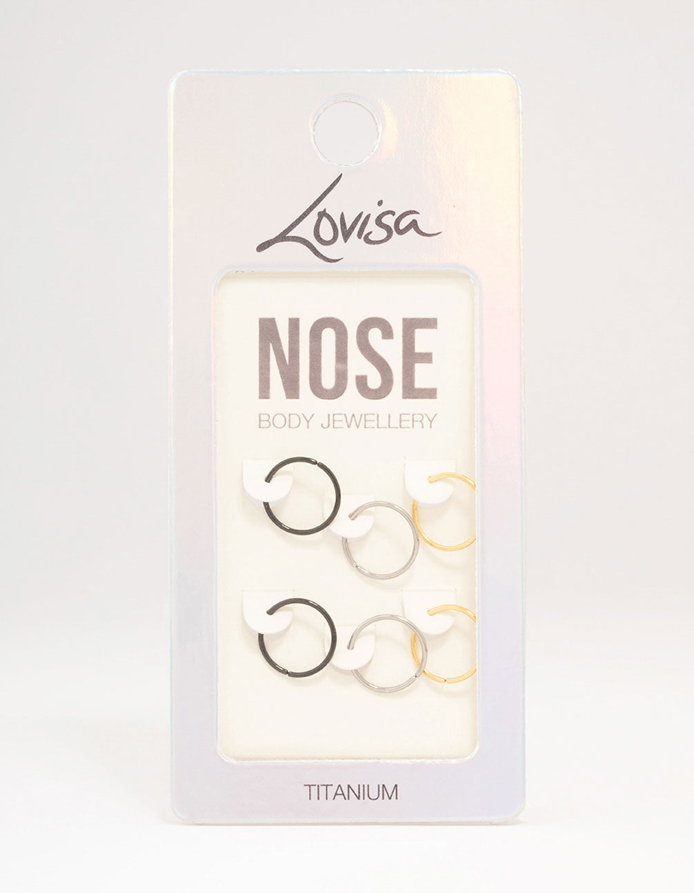 This nose ring pack includes six individual rings, designed with mixed metals for a unique finish.