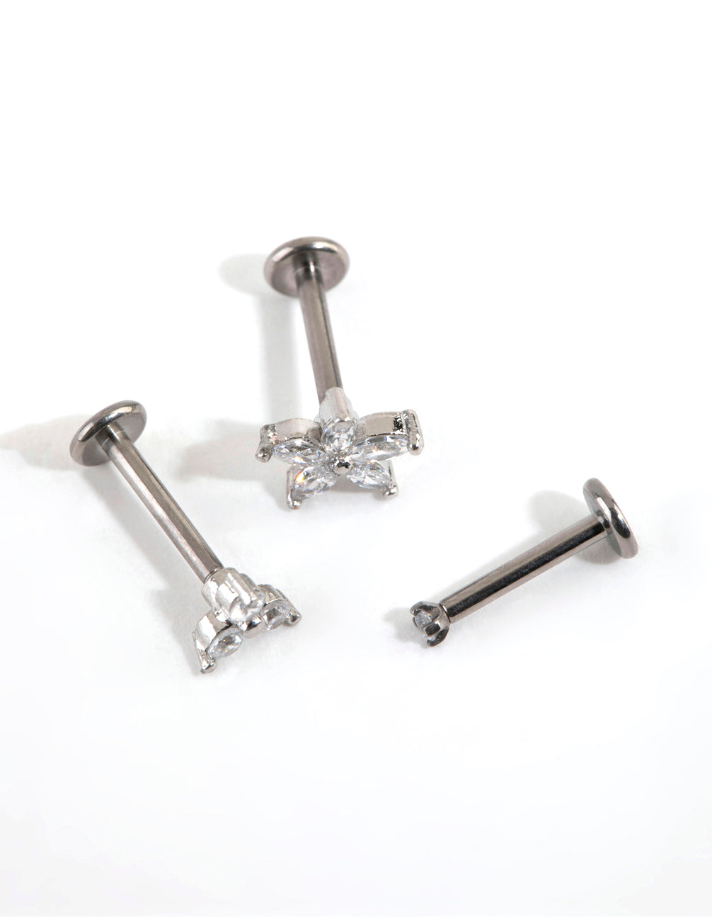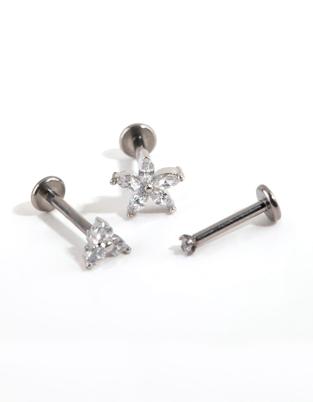 Express your individuality with Lovisa body jewellery! This earring pack includes three studs which have flat backs for your comfort. They are made with titanium, which is gentle on ears. Each stud measures 16G/1.2mm.