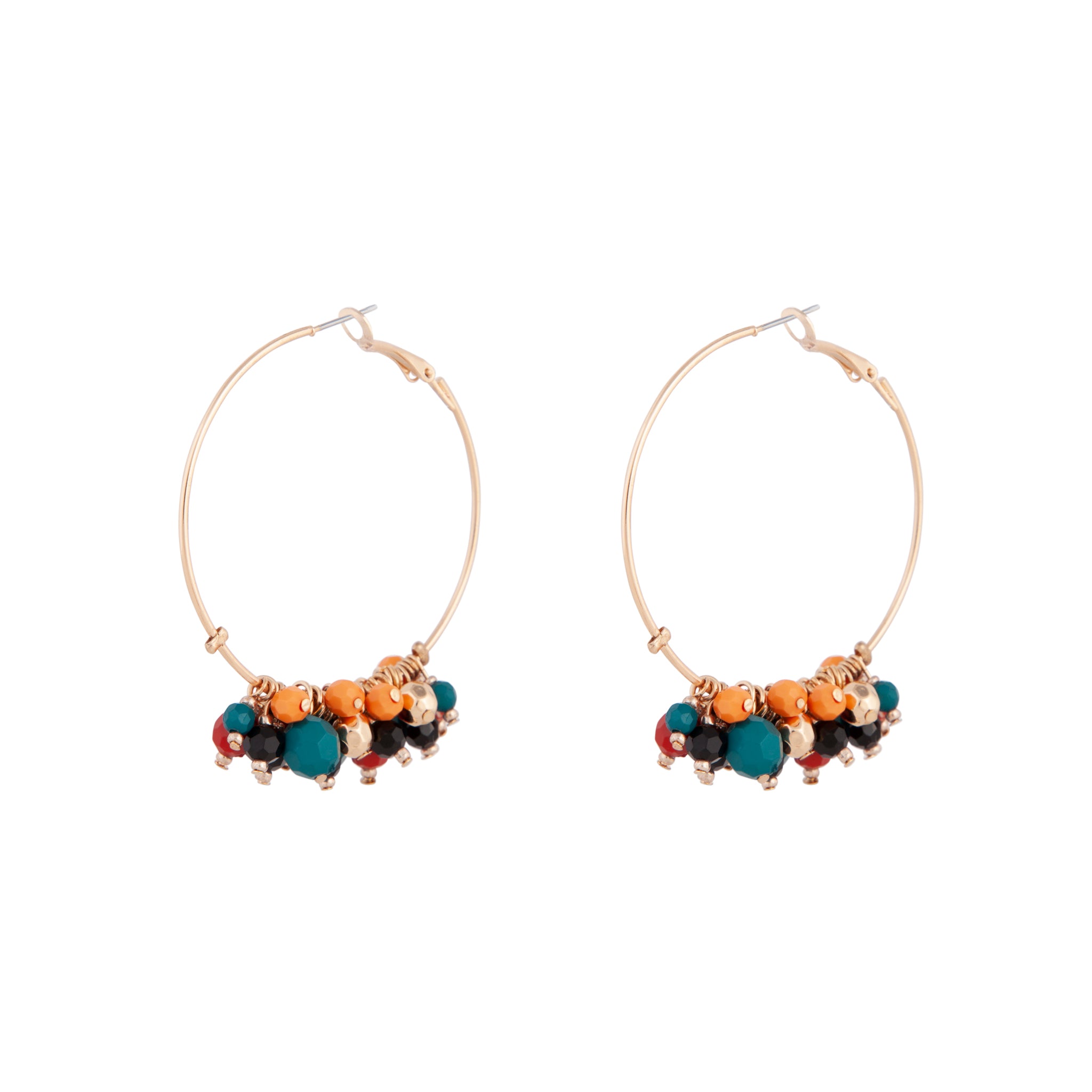 Lovisa's antique style accessories are a stunning nod to traditional pieces with a modern twist! These gold-toned hoop earrings feature bundles of multi-coloured beads. Style with antique-look layered necklaces and scattered rings for a free-spirited look.
