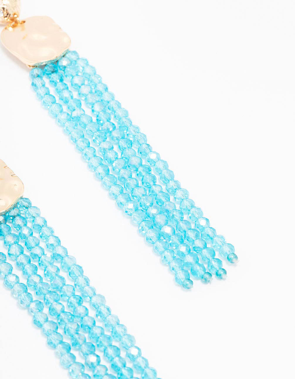 Accessorise like you're on vacation with these gorgeous statement earrings. These unique drop earrings feature a cascading design of bright, turquoise beads.