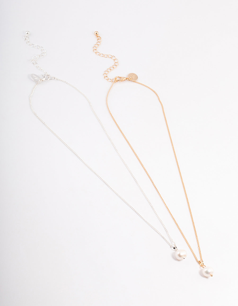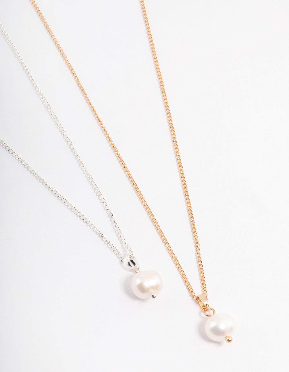 - This necklace two-pack includes two chains, one gold and one silver with a pearl pendant - perfect for you and your bestie!