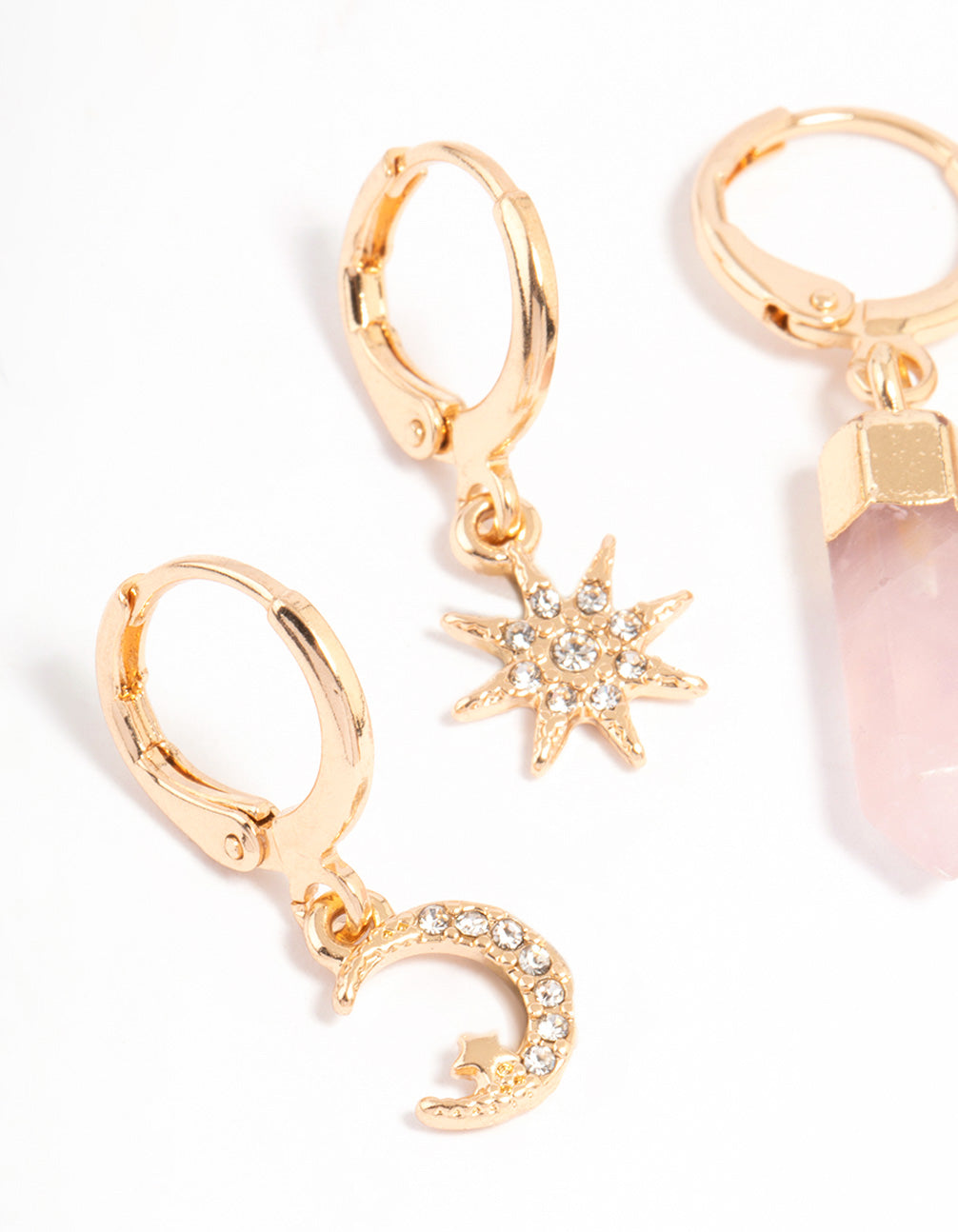 Gold Celestial & Rose Quartz Earrings Pack Gold Celestial & Rose Quartz Earrings Pack Gold Celestial & Rose Quartz Earrings Pack