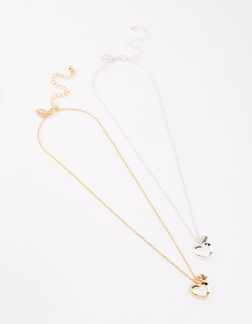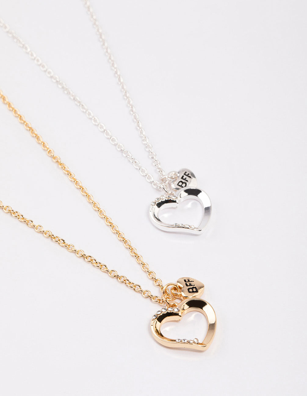 - This necklace pack contains two gold and silver necklaces, designed with an open heart pendant for you and your bestie.