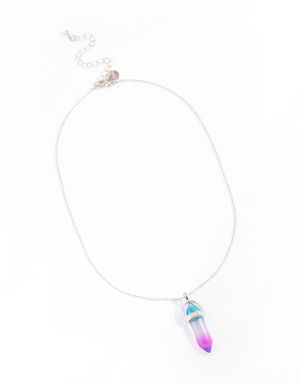 - This pendant necklace features a silver-toned setting with a blue and lilac coloured crystal pendant for a glamorous finish.