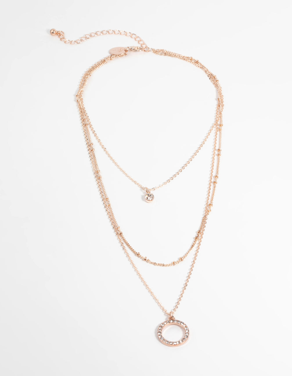This necklace boasts multiple rows to give the illusion of multiple necklaces. It features a charming diamante-studded design on a fine rose-gold-toned chain. No chain no gain!