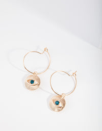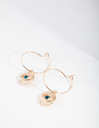 Gold Stone Evil Eye Hoop Earrings