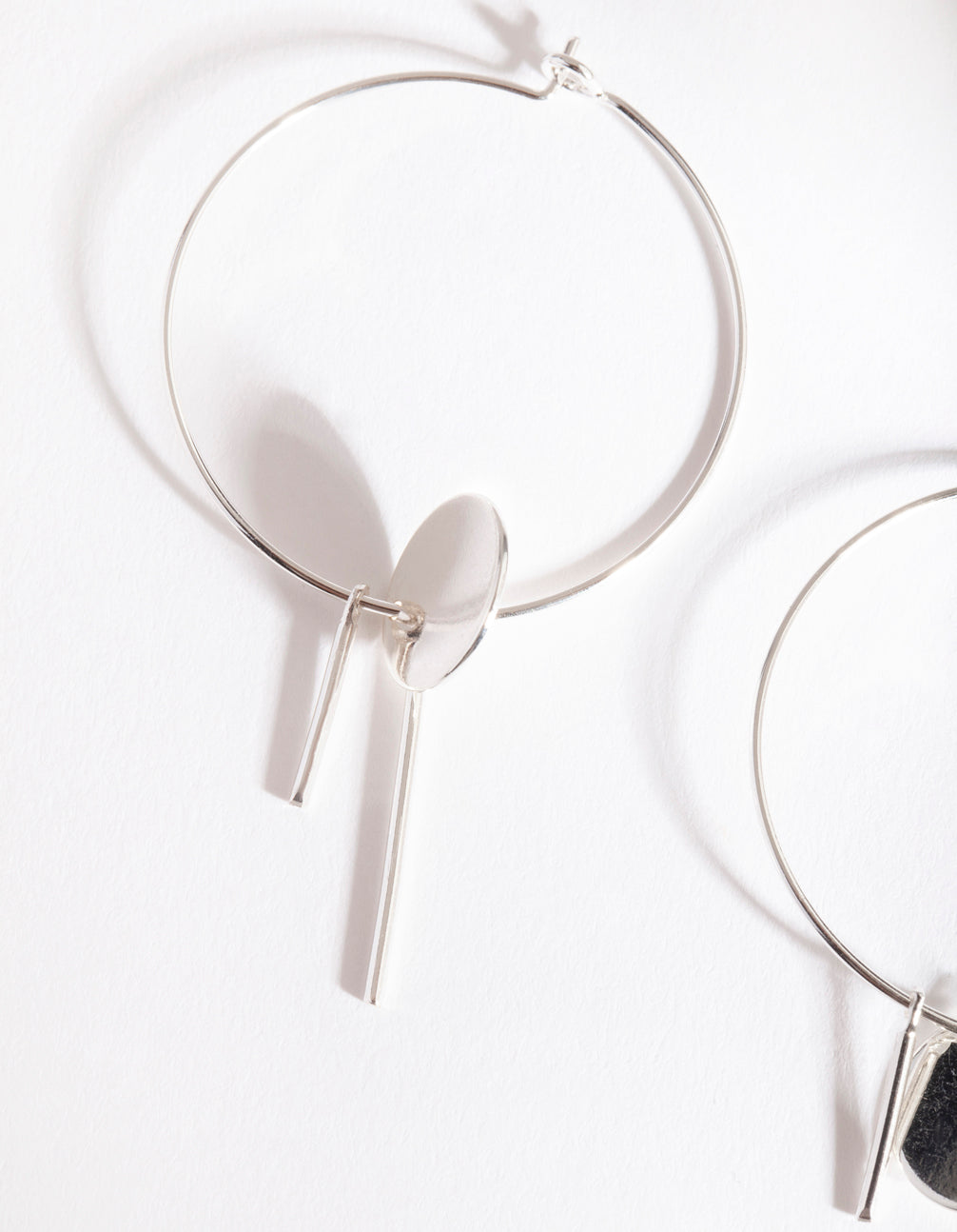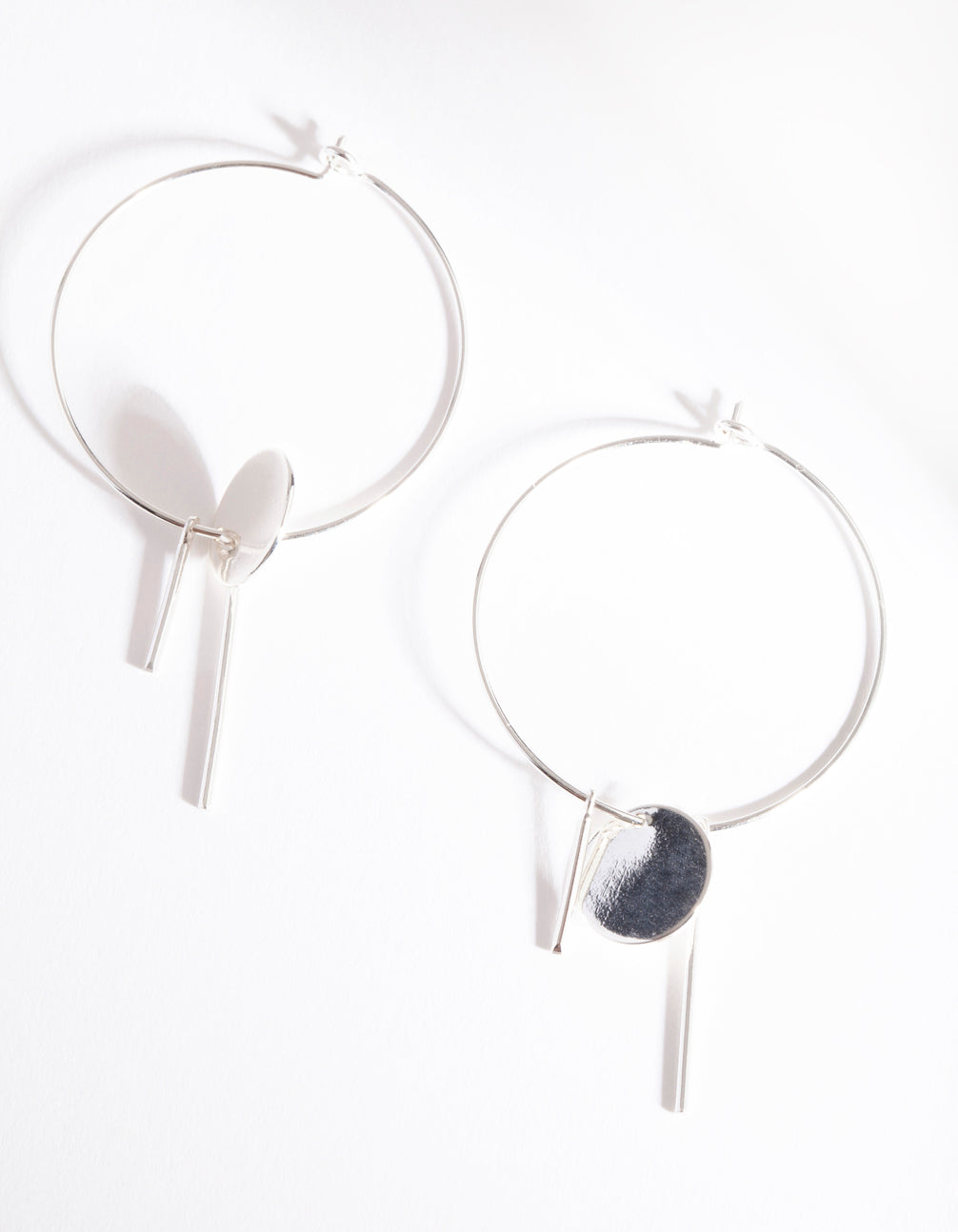 Turn heads with a pair of statement earrings! This earring boasts a fine hoop with a disc and stick designs in a silver-toned setting. Style with silver-toned chain layered necklaces and scattered dainty rings for an on-trend finish!