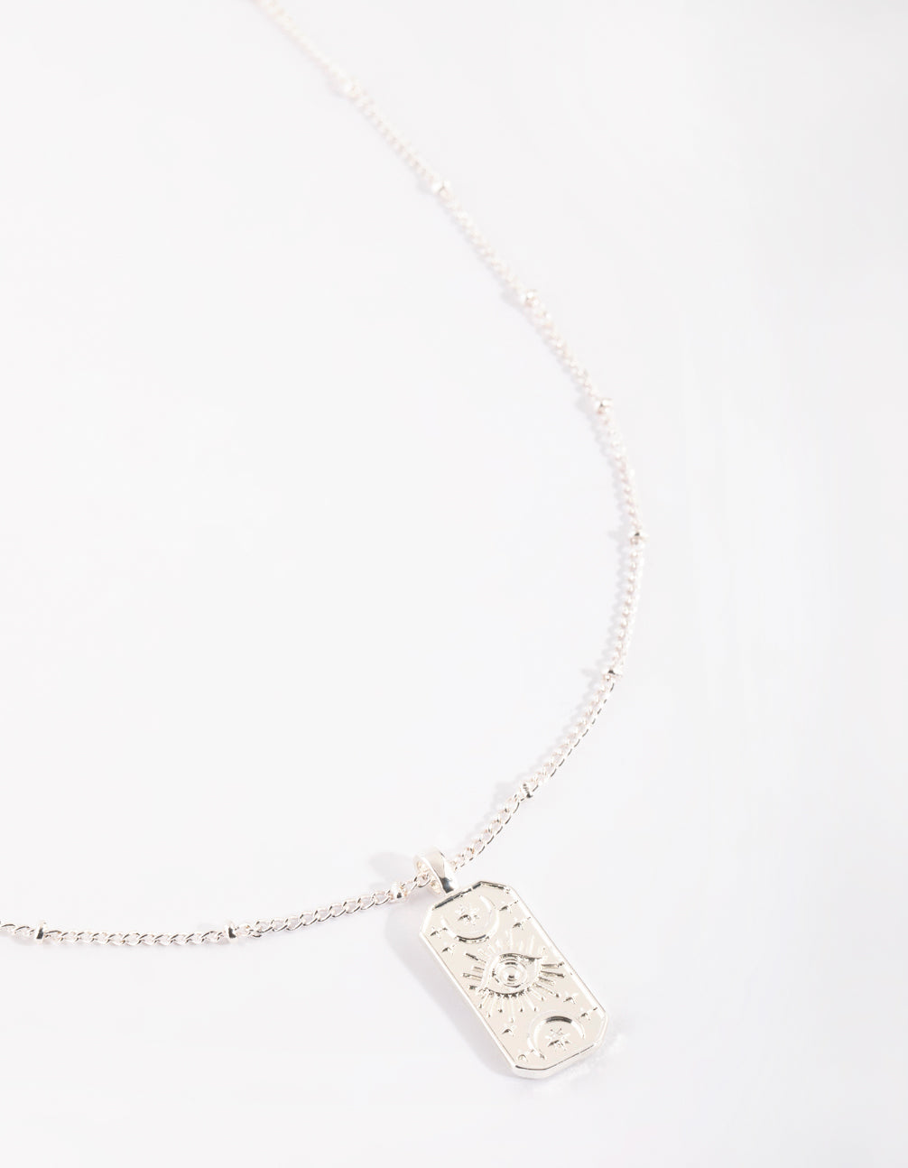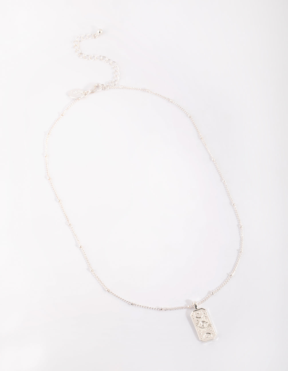 This pretty pendant necklace is perfect for daily wear! It features a pretty tarot-style design on a fine silver-toned chain. Layer it with other chains for maximum impact!