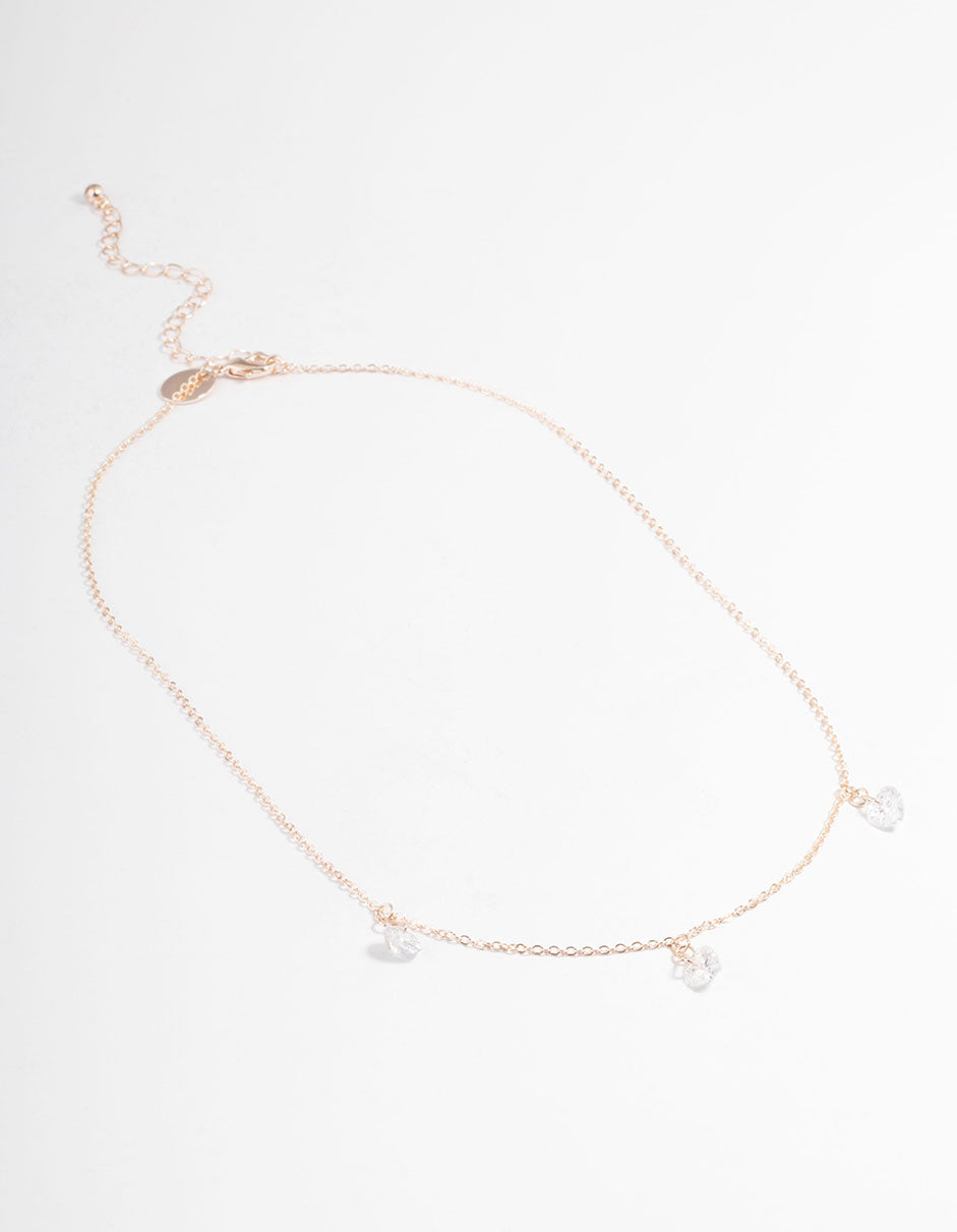 Rose Gold Cubic Zirconia Heart Droplet Necklace
