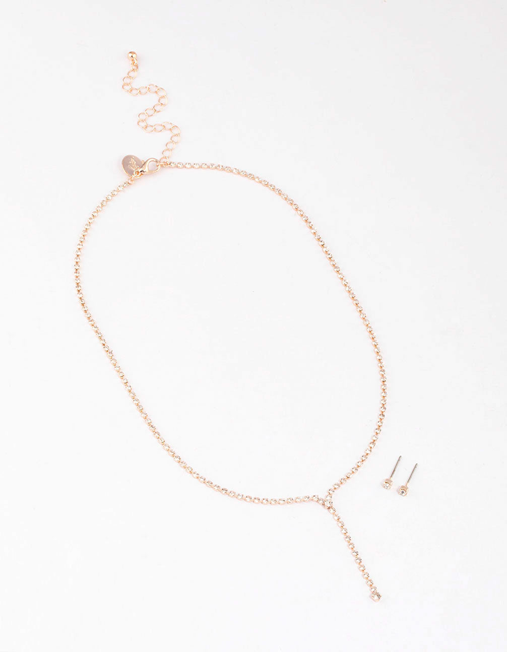 Rose Gold Y-Shaped Cup Chain Necklace & Earring Set